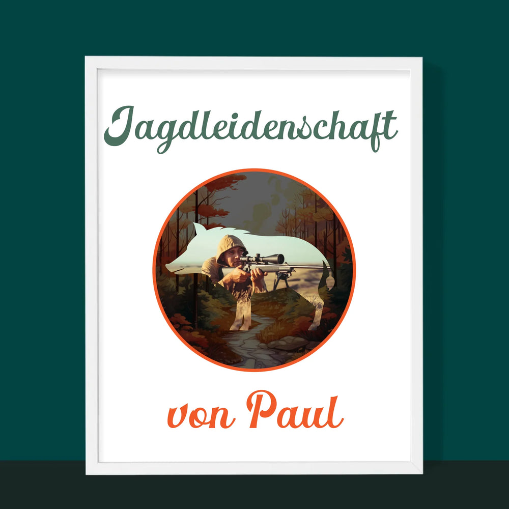 Foto Und Unterschrift: Jagdleidenschaft - Druck mit Rahmen - Vertikal