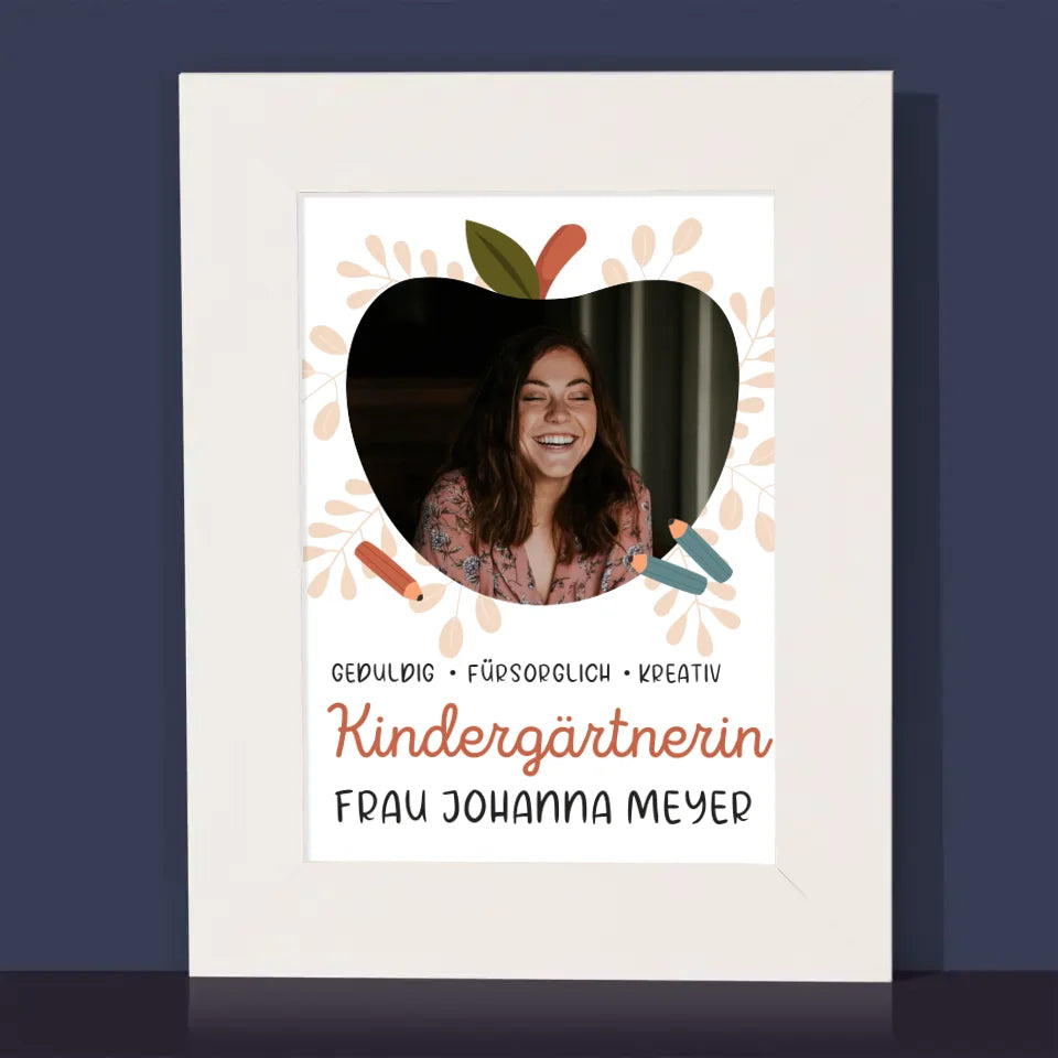 Foto Und Unterschrift: Kindergärtnerin - Bilderrahmen - Vertikal