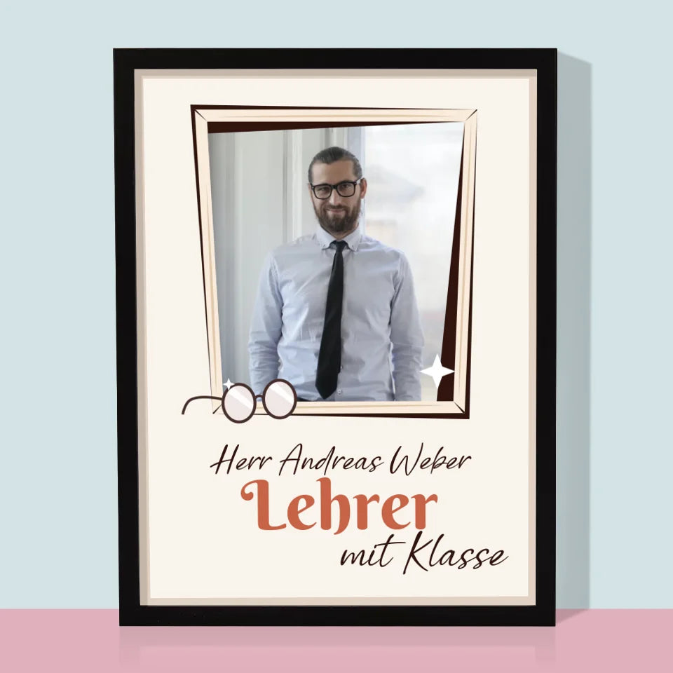 Foto Und Unterschrift: Lehrer Mit Klasse - Druck mit Rahmen 30x40 - Vertikal