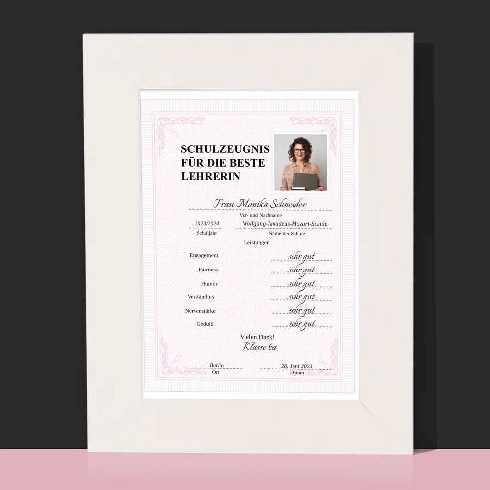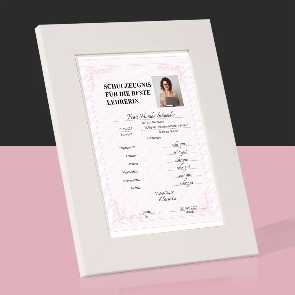 Foto Und Unterschrift: Lehrer/In-Zeugnis - Bilderrahmen - Vertikal