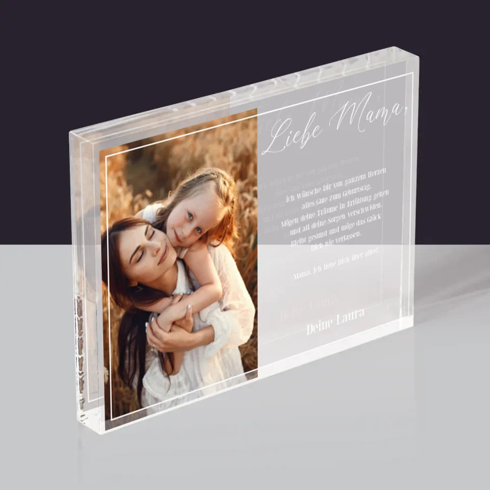 Foto Und Unterschrift: Liebe Mama - Acrylblock - Horizontal
