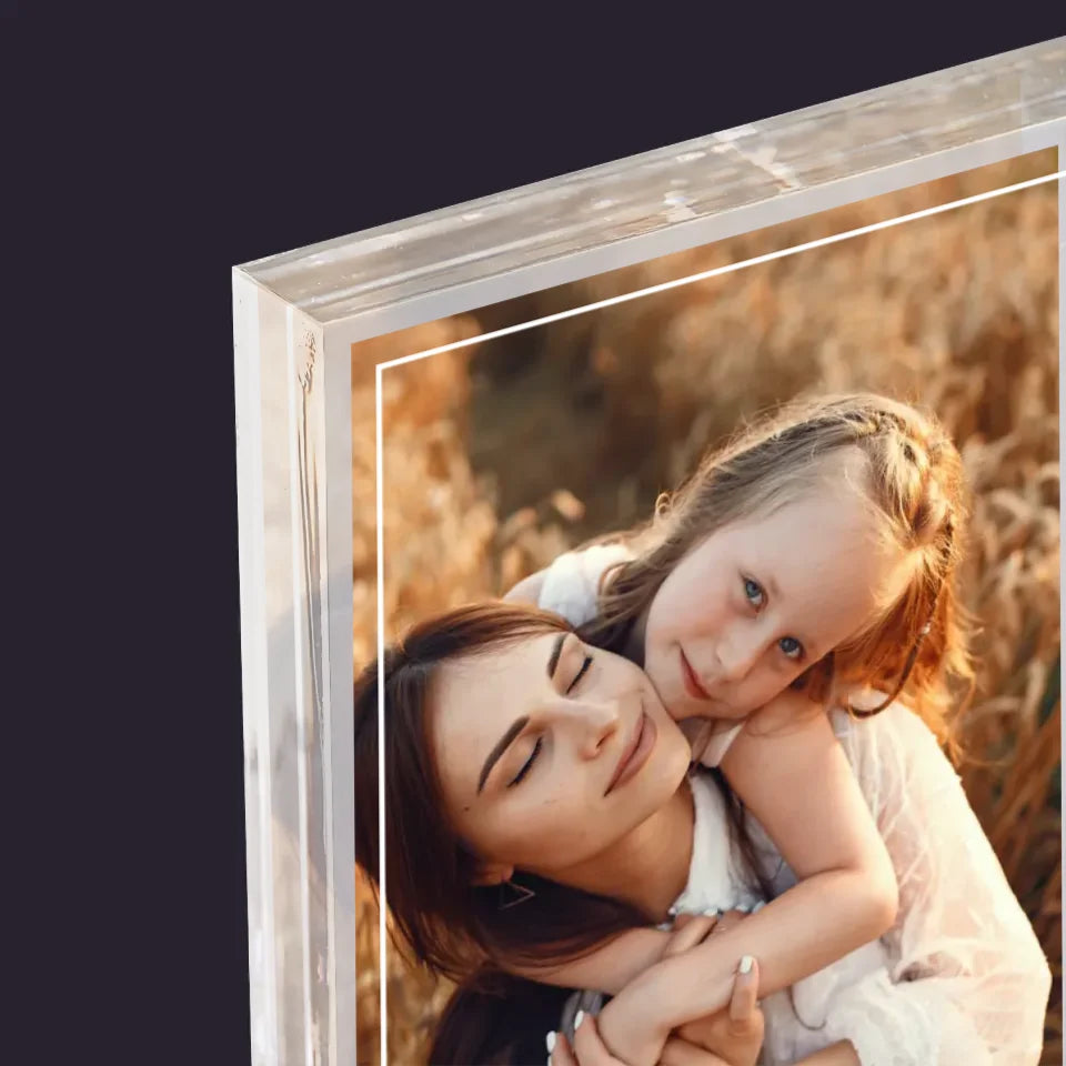 Druck auf einem 2 cm dicken, klaren Acrylblock (Plexiglas), individuell personalisiert.