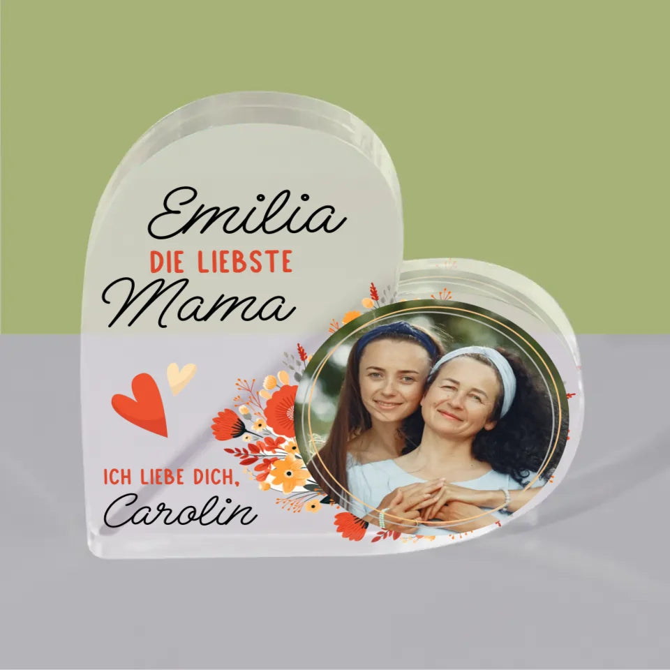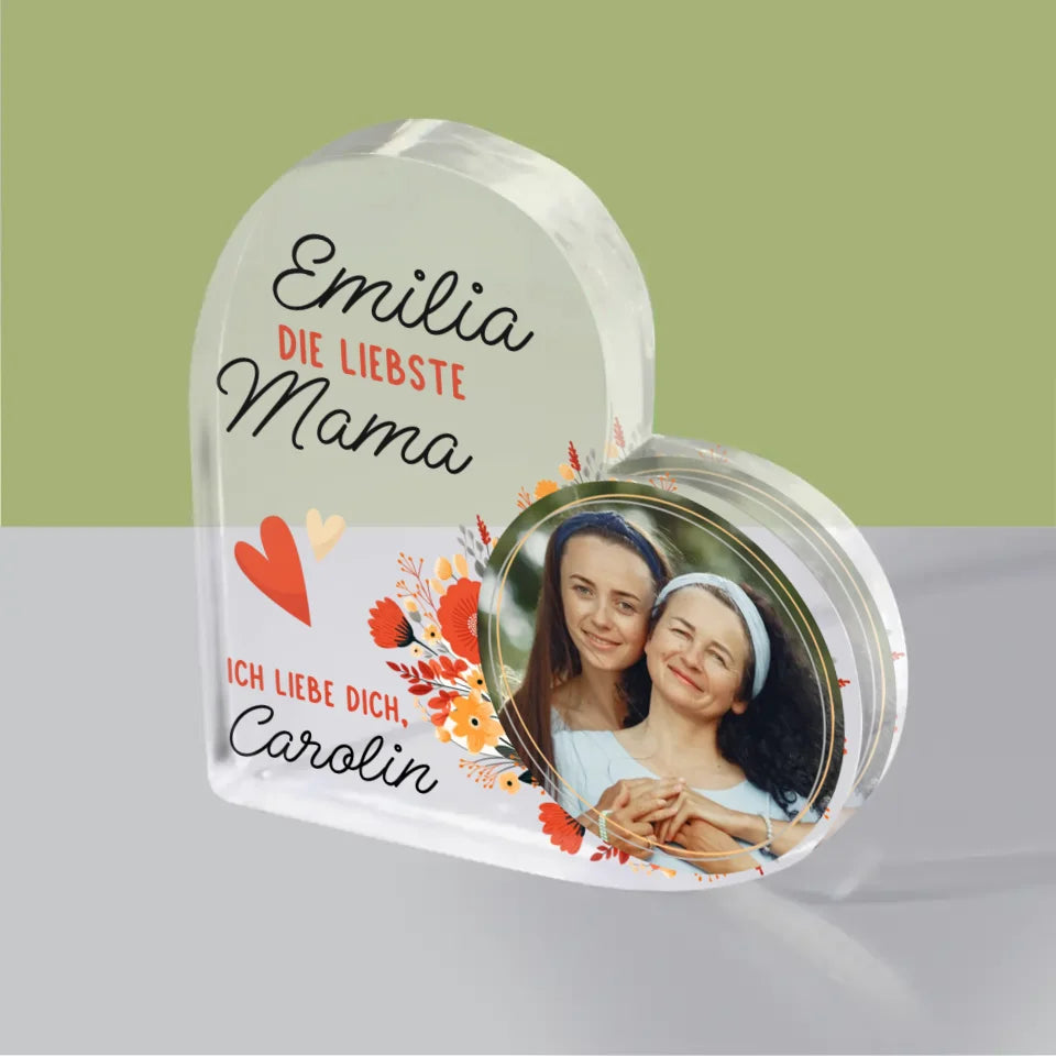 Foto Und Unterschrift: Liebste Mama - Acrylblock Herz