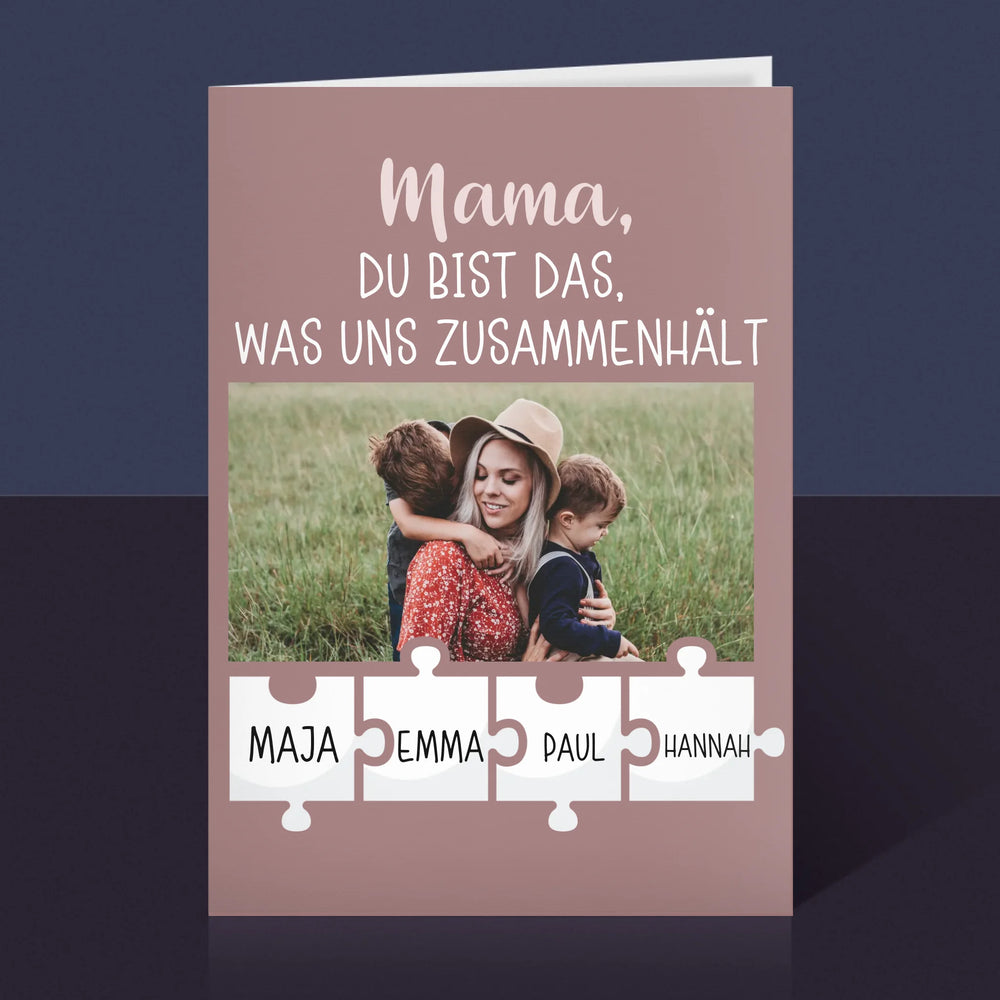 Foto Und Unterschrift: Mama, Du Bist Das, Was Uns Zusammenhält - Glückwunschkarte