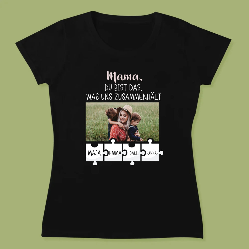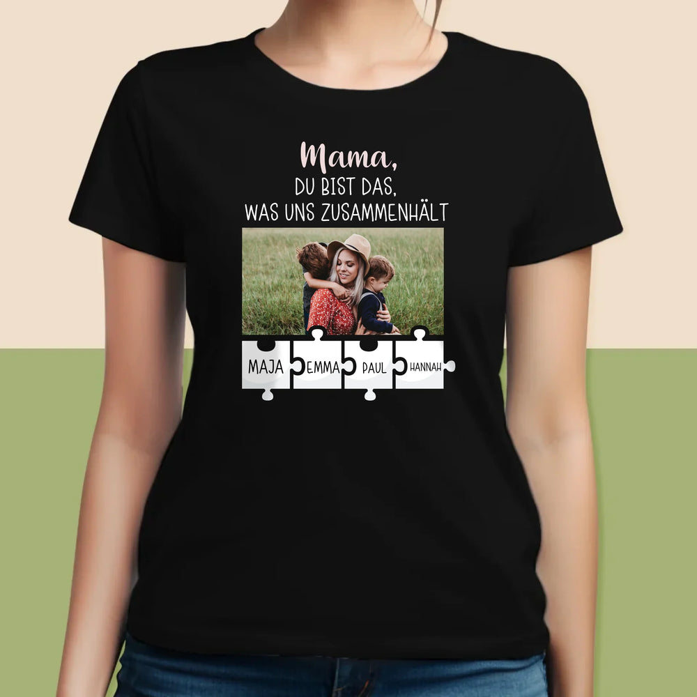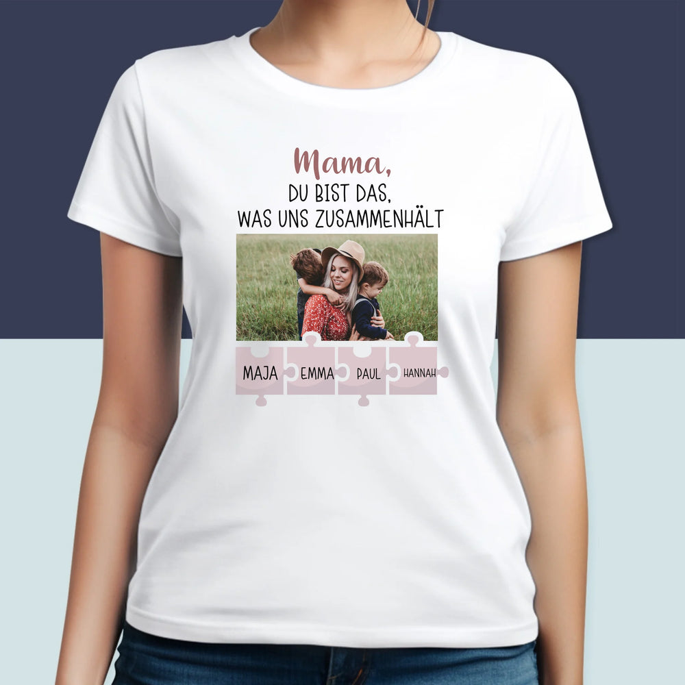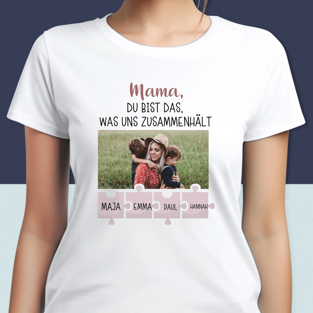 Foto Und Unterschrift: Mama, Du Bist Das, Was Uns Zusammenhält - T-Shirt für Damen