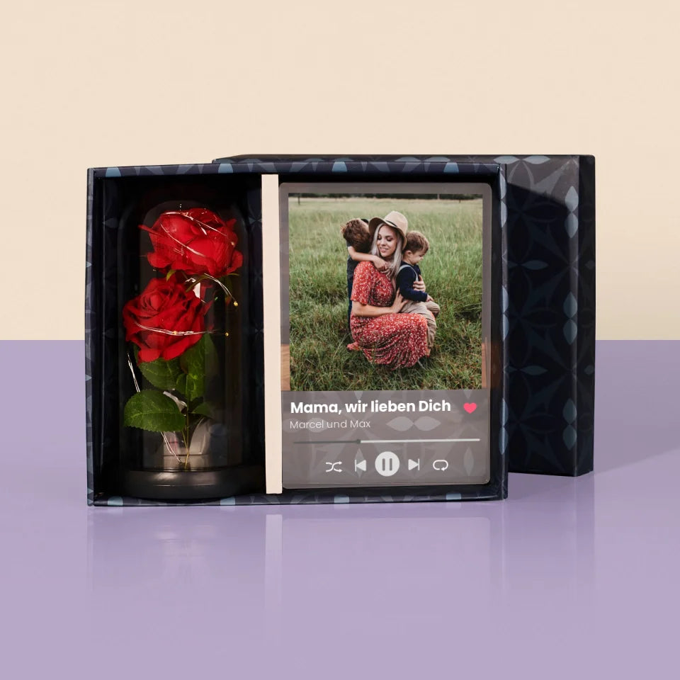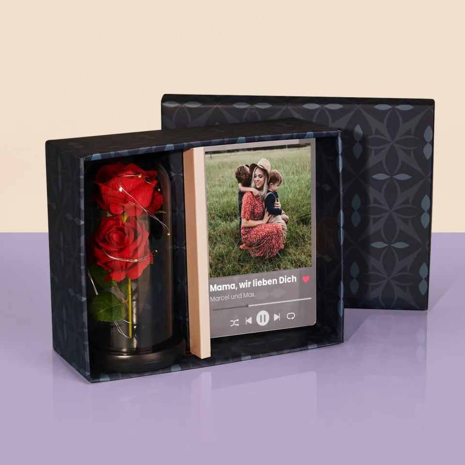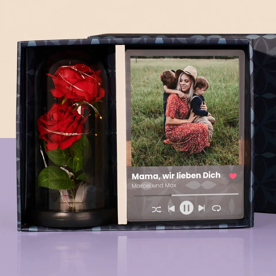Foto Und Unterschrift: Mama, Wir Lieben Dich - Geschenkset mit Druck auf Acrylglas und ewiger Rose
