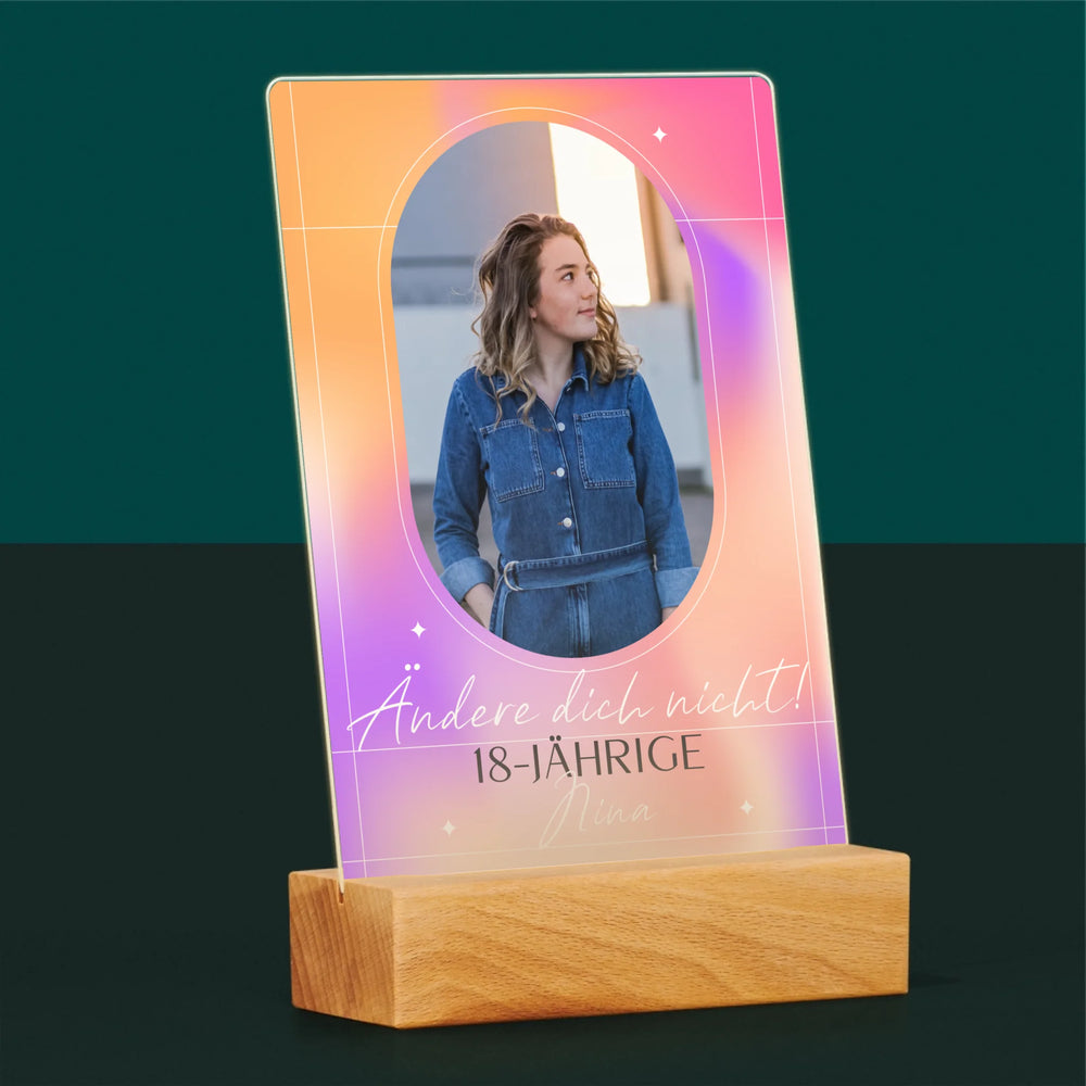 Foto Und Unterschrift: Ändere Dich Nicht - Druck auf Acrylglas mit LED-Beleuchtung