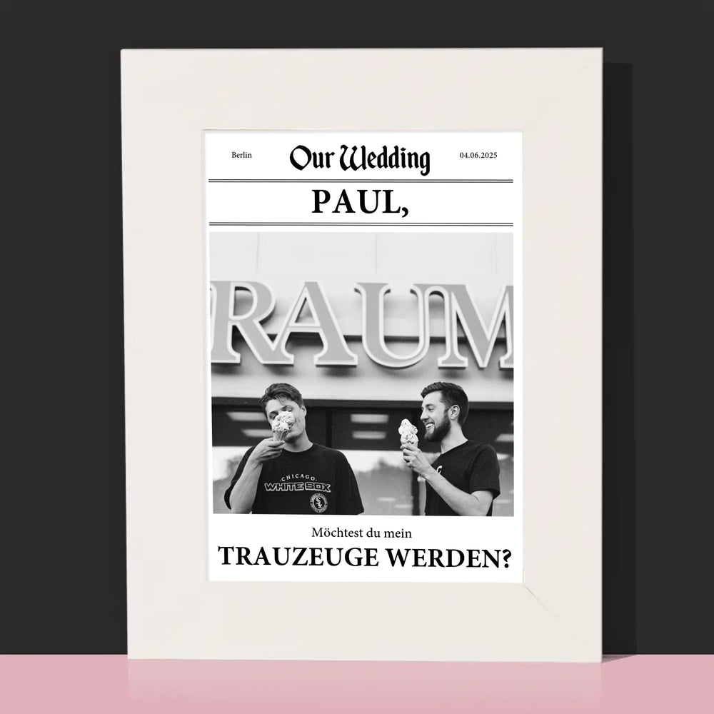 Foto Und Unterschrift: Our Wedding Trauzeuge - Bilderrahmen - Vertikal