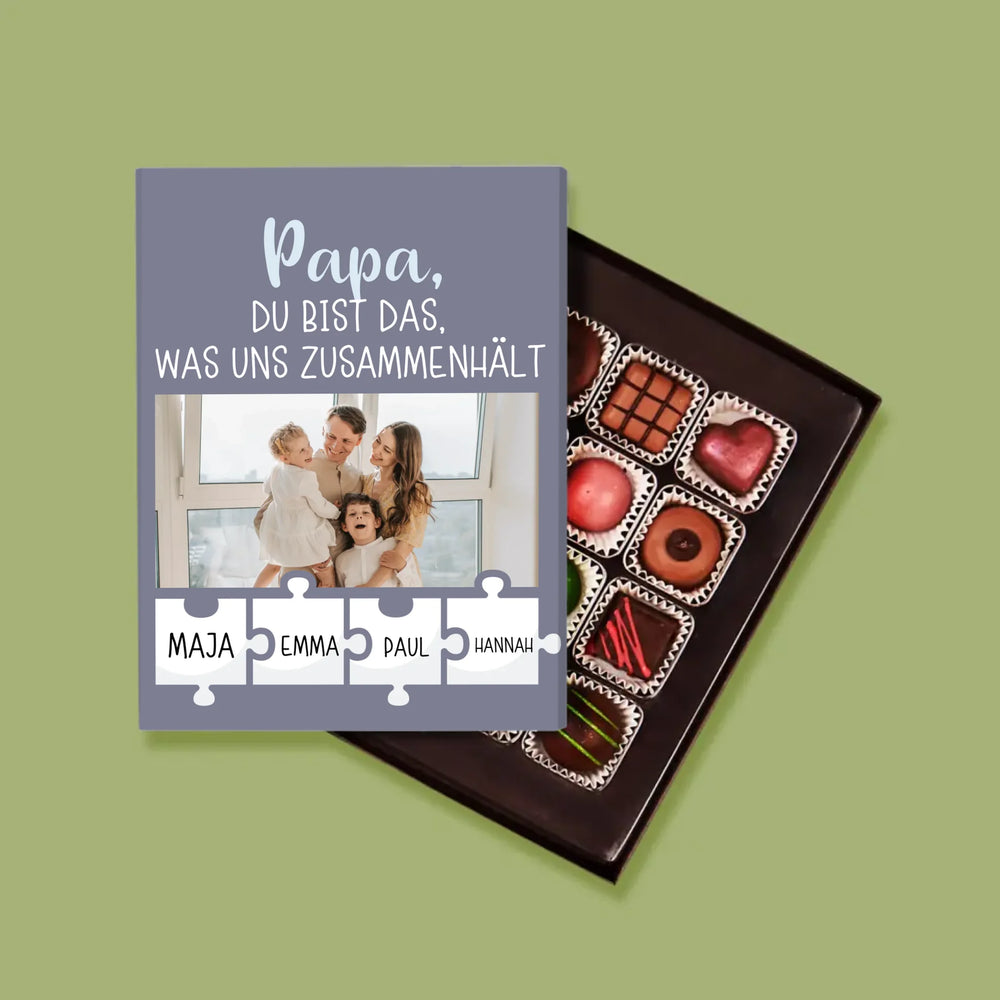 Foto Und Unterschrift: Papa, Du Bist Das, Was Uns Zusammenhält - Pralinen