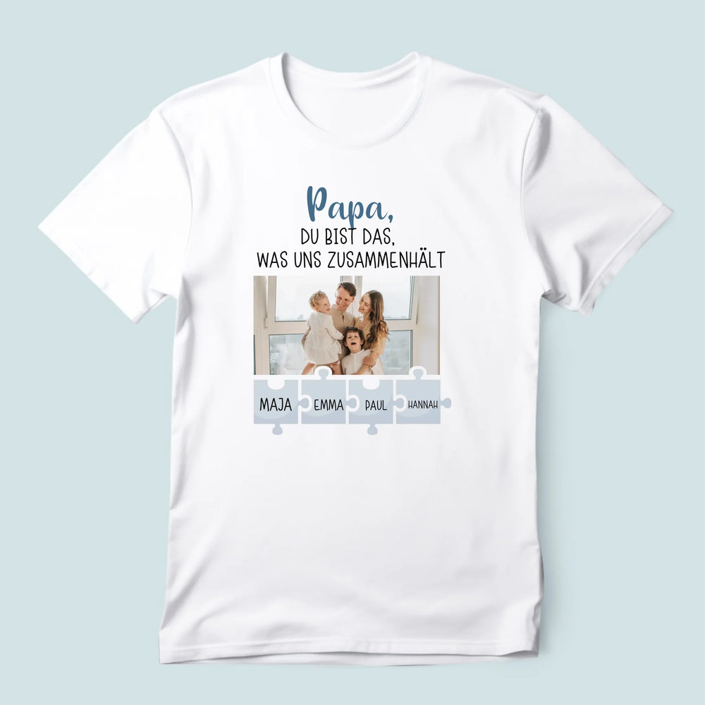 Foto Und Unterschrift: Papa, Du Bist Das, Was Uns Zusammenhält - T-Shirt für Herren