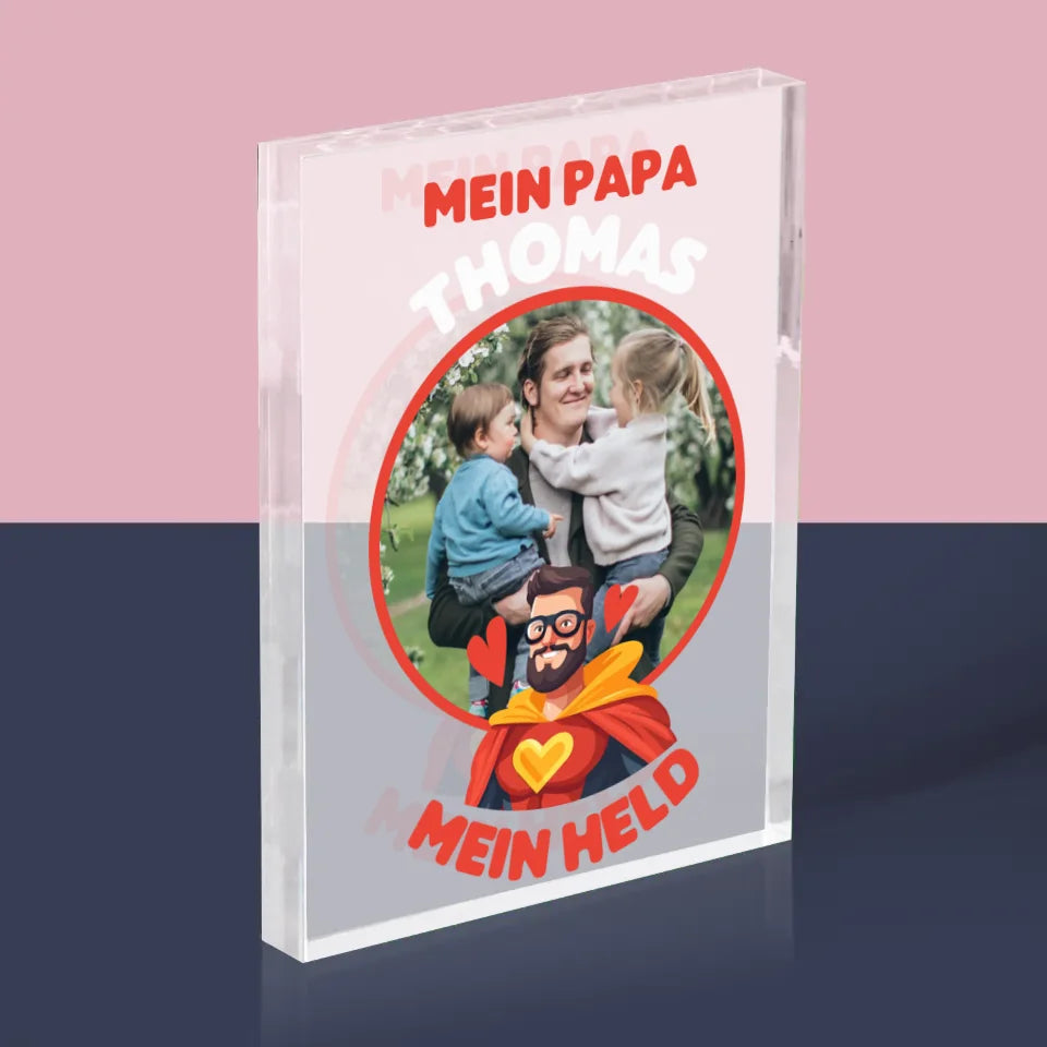 Foto Und Unterschrift: Papa, Mein Held - Acrylblock - Vertikal