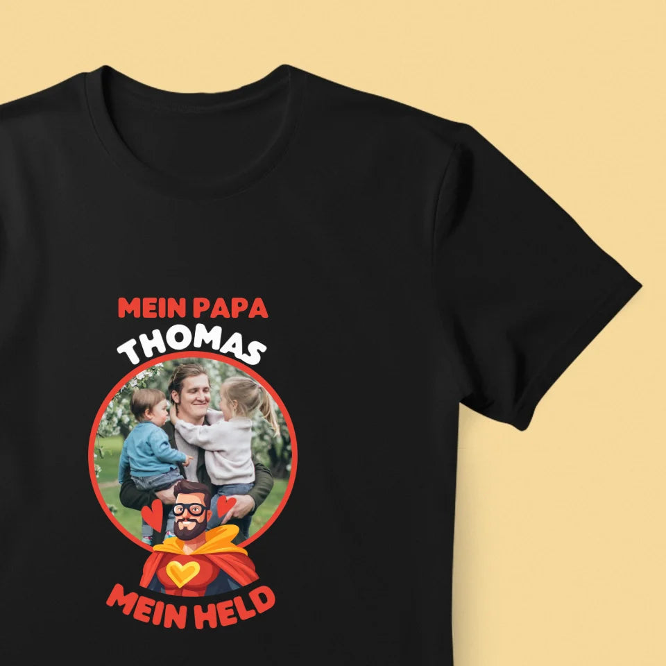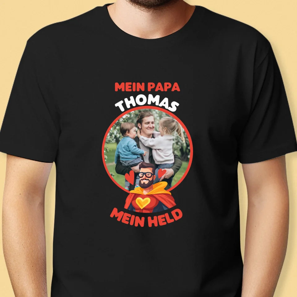 Foto Und Unterschrift: Papa, Mein Held - T-Shirt für Herren