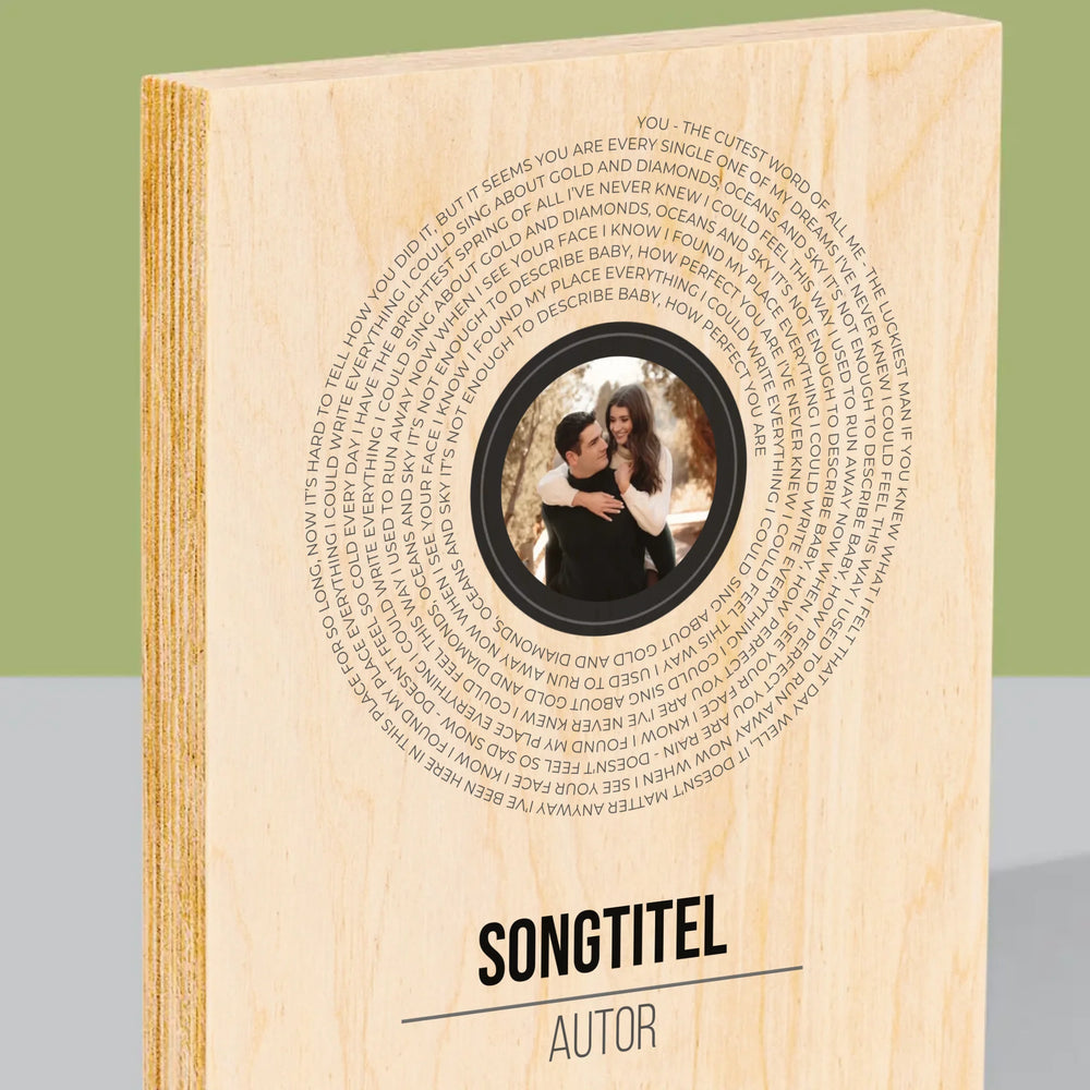 Foto Und Unterschrift: Songtexte Auf Der Platte - Druck auf Holz - Vertikal