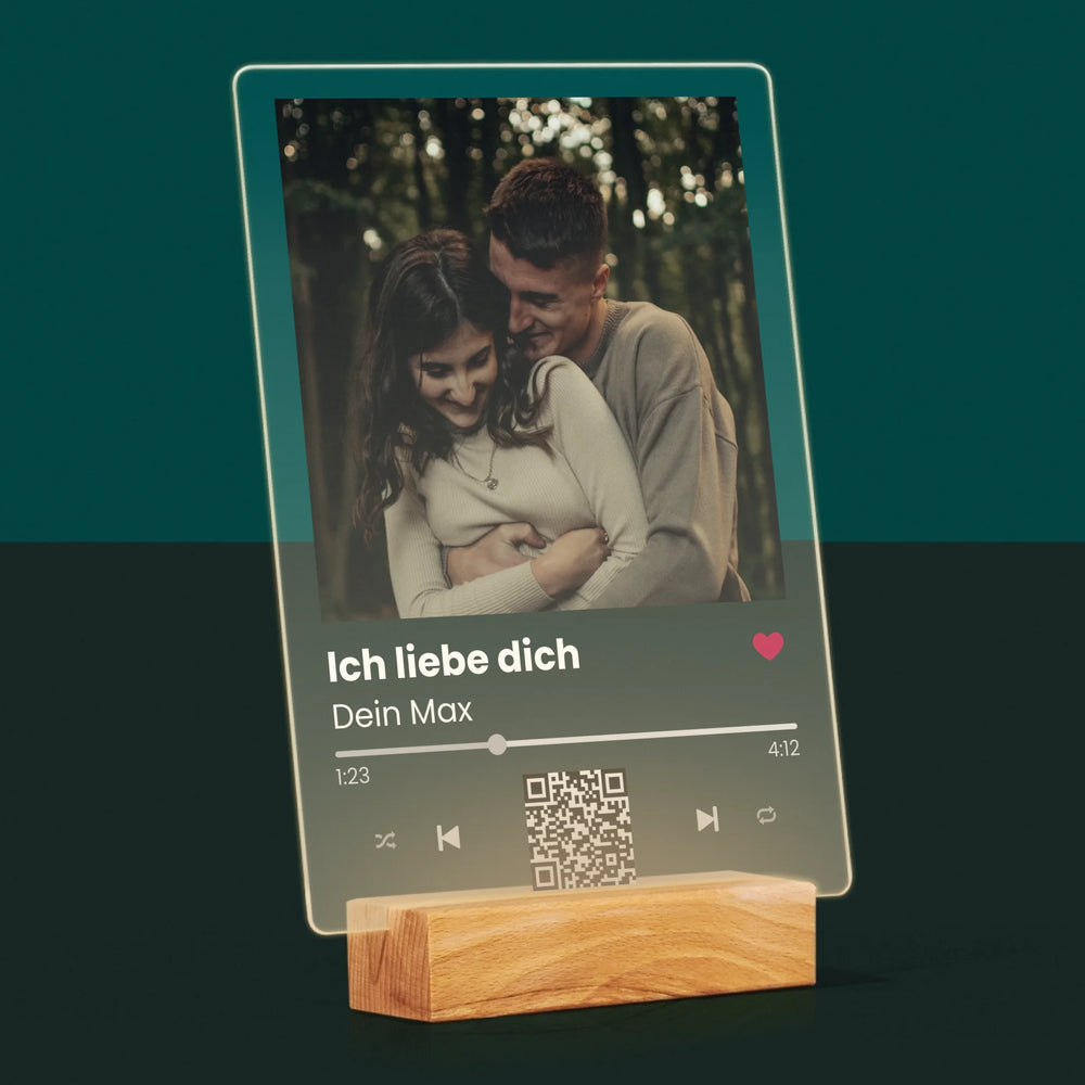 Foto Und Unterschrift: Spotify Mit Qr-Code - Druck auf Acrylglas mit LED-Beleuchtung