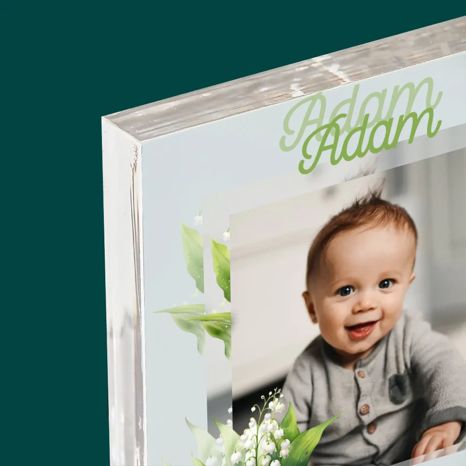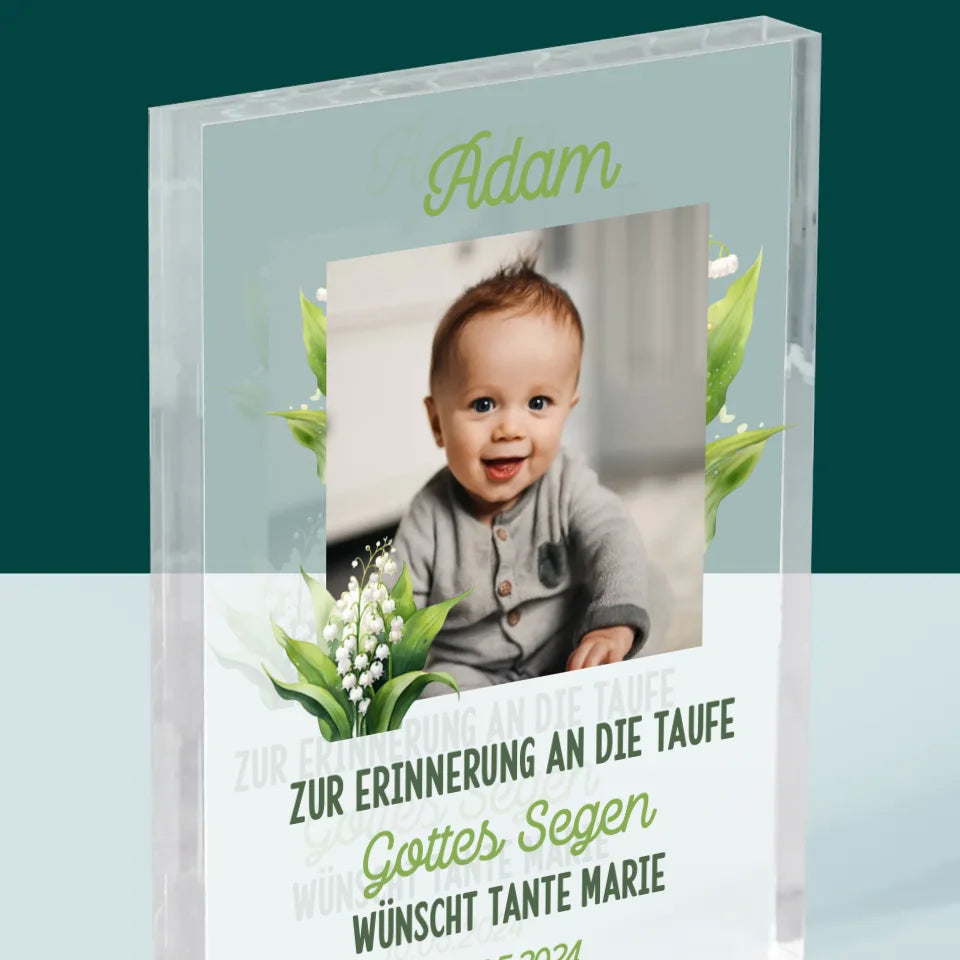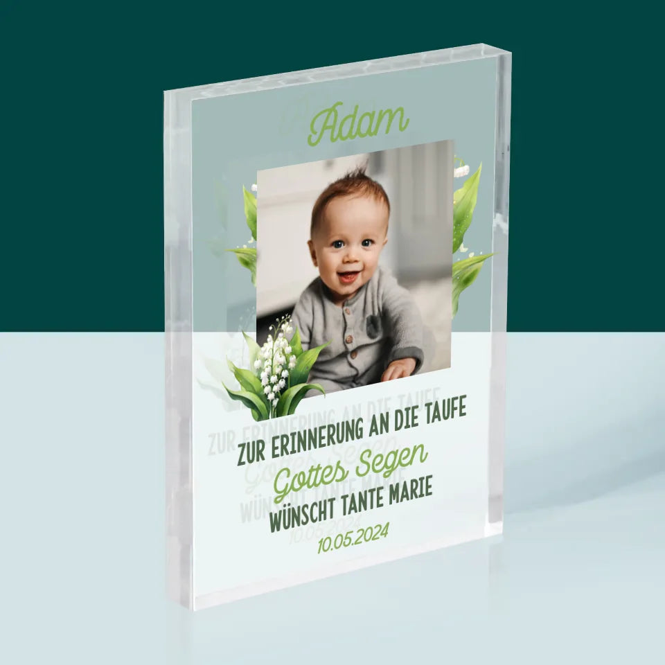 Foto Und Unterschrift: Tauferinnerung Maiglöckchen - Acrylblock - Vertikal