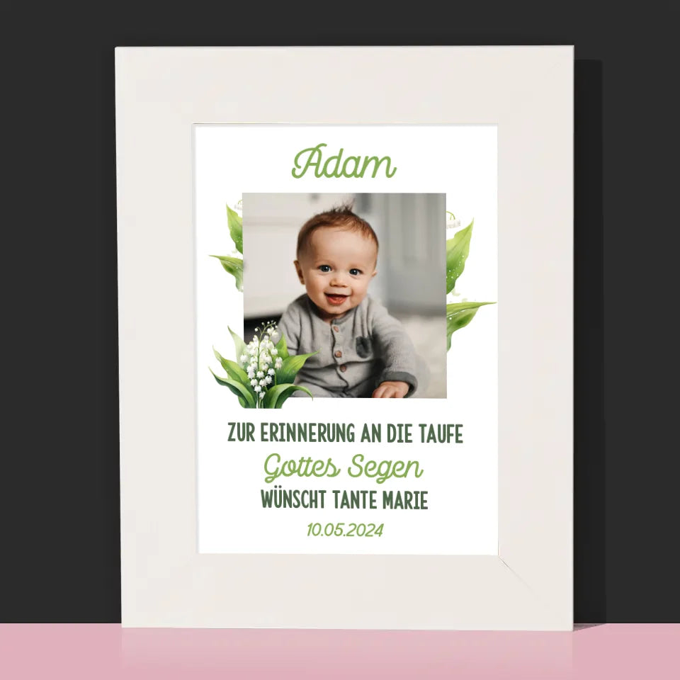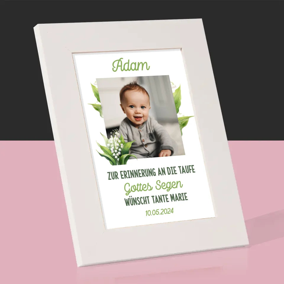 Foto Und Unterschrift: Tauferinnerung Maiglöckchen - Bilderrahmen - Vertikal