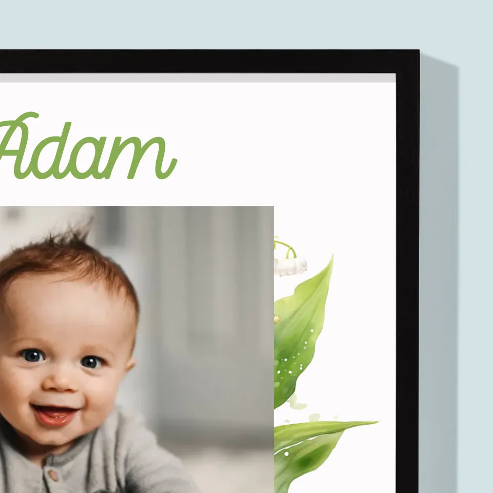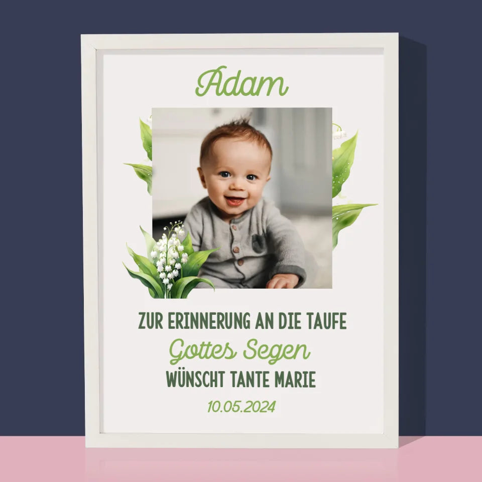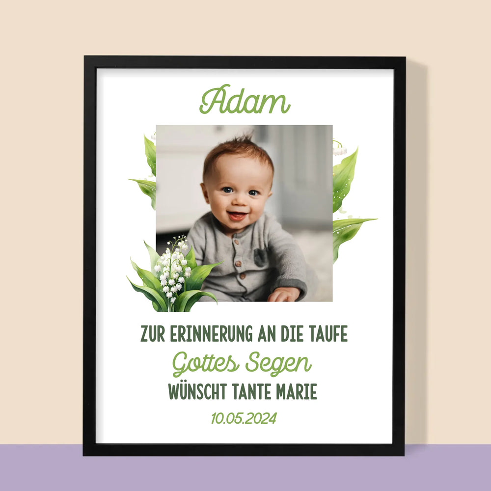 Foto Und Unterschrift: Tauferinnerung Maiglöckchen - Druck mit Rahmen - Vertikal
