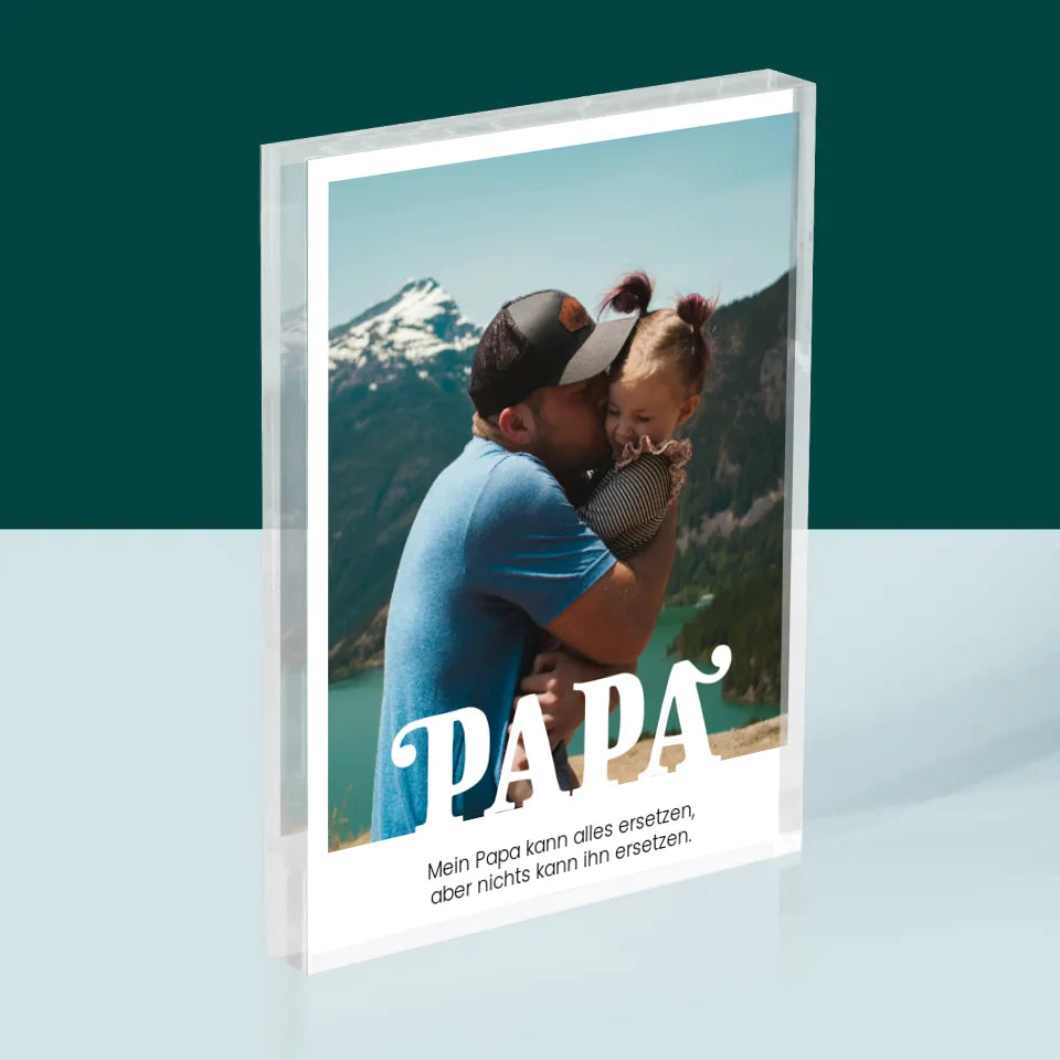 Foto Und Unterschrift: Unersetzlicher Papa Widmung - Acrylblock - Vertikal