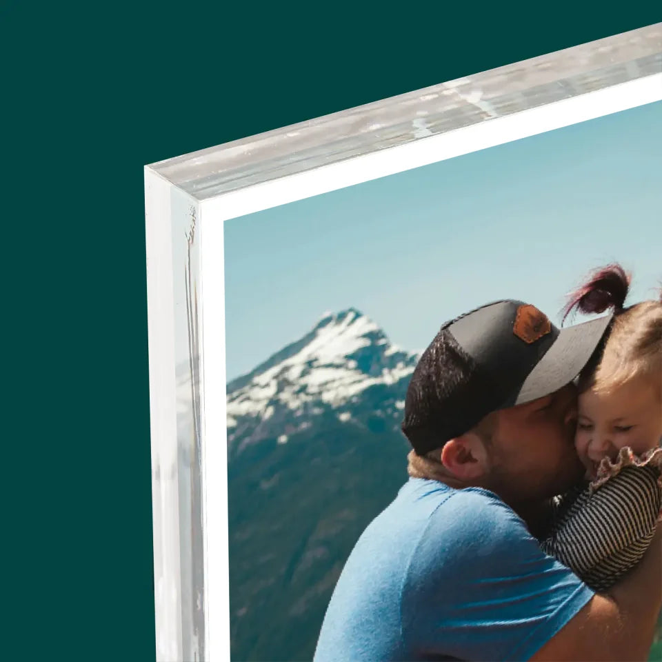 Druck auf einem 2 cm dicken, klaren Acrylblock (Plexiglas), individuell personalisiert.