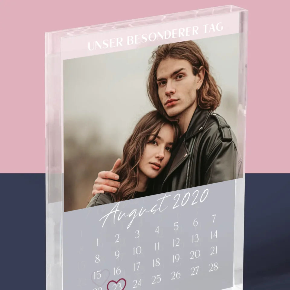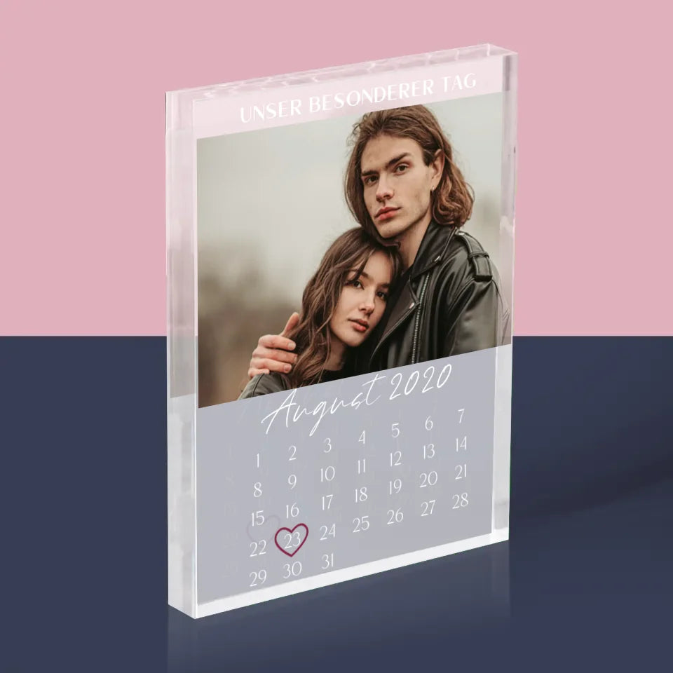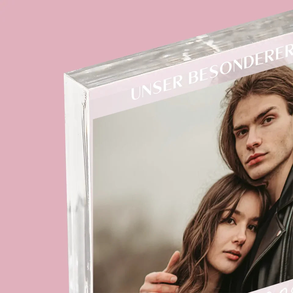 Foto Und Unterschrift: Unser Besonderer Tag - Acrylblock - Vertikal