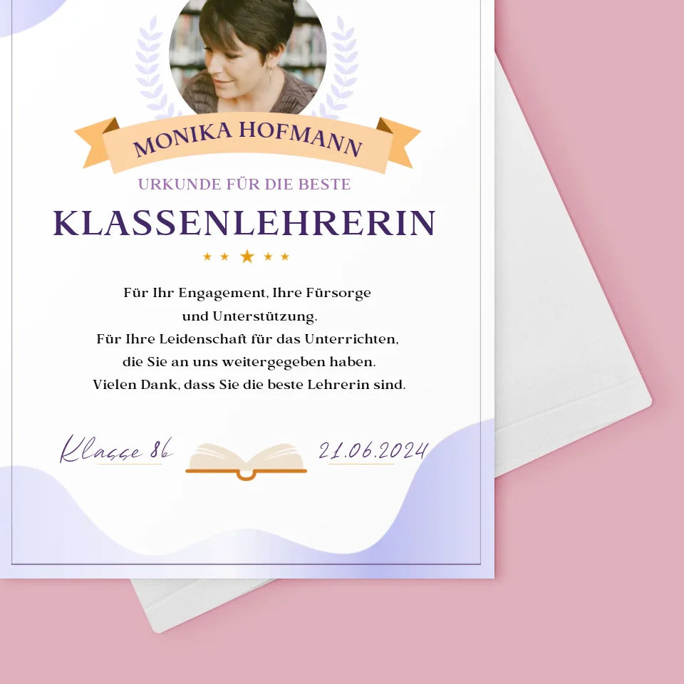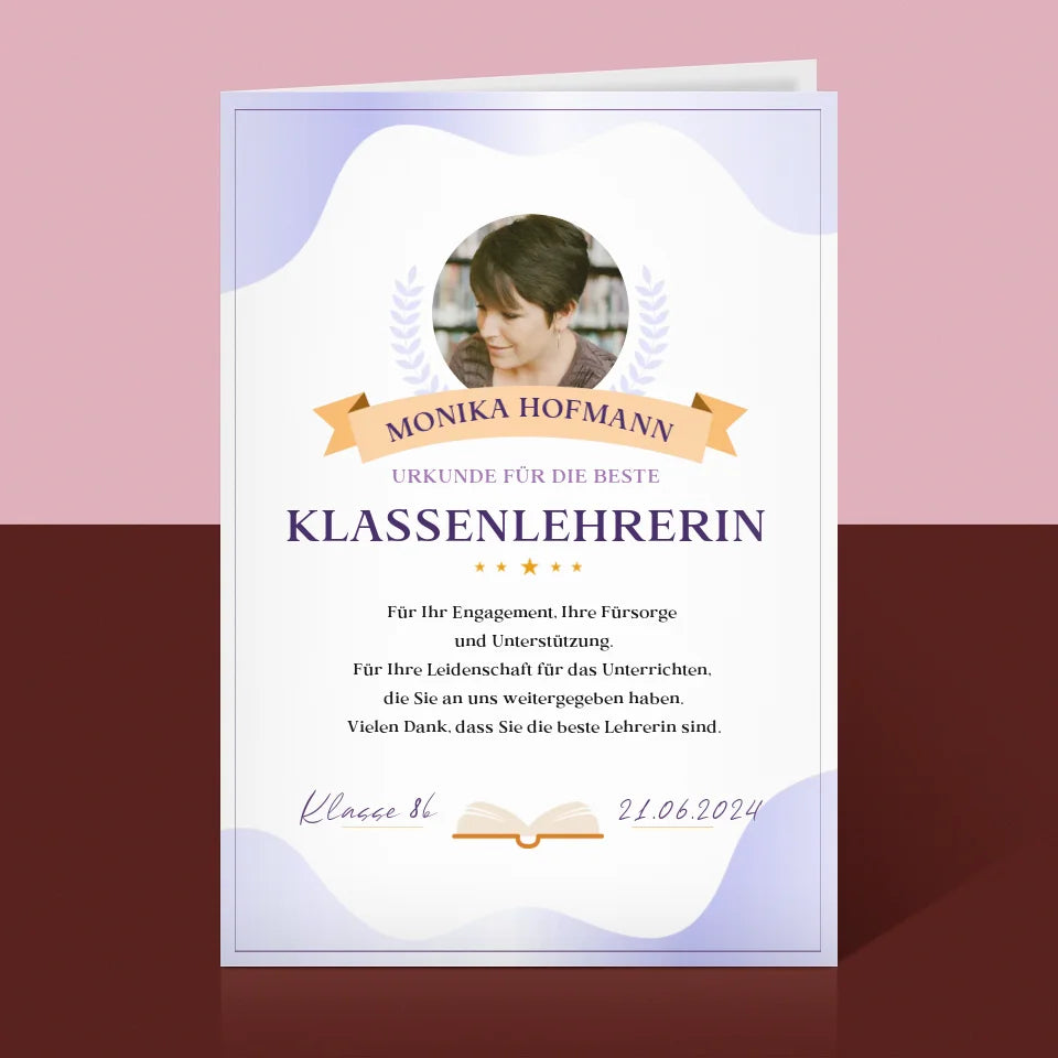 Foto Und Unterschrift: Urkunde Beste Klassenlehrerin - Glückwunschkarte