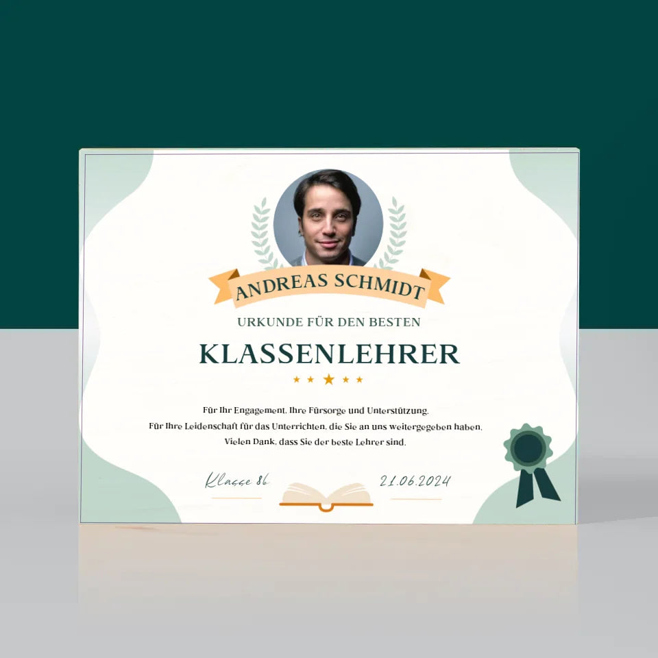 Foto Und Unterschrift: Urkunde Bester Klassenlehrer - Druck auf Holz - Horizontal