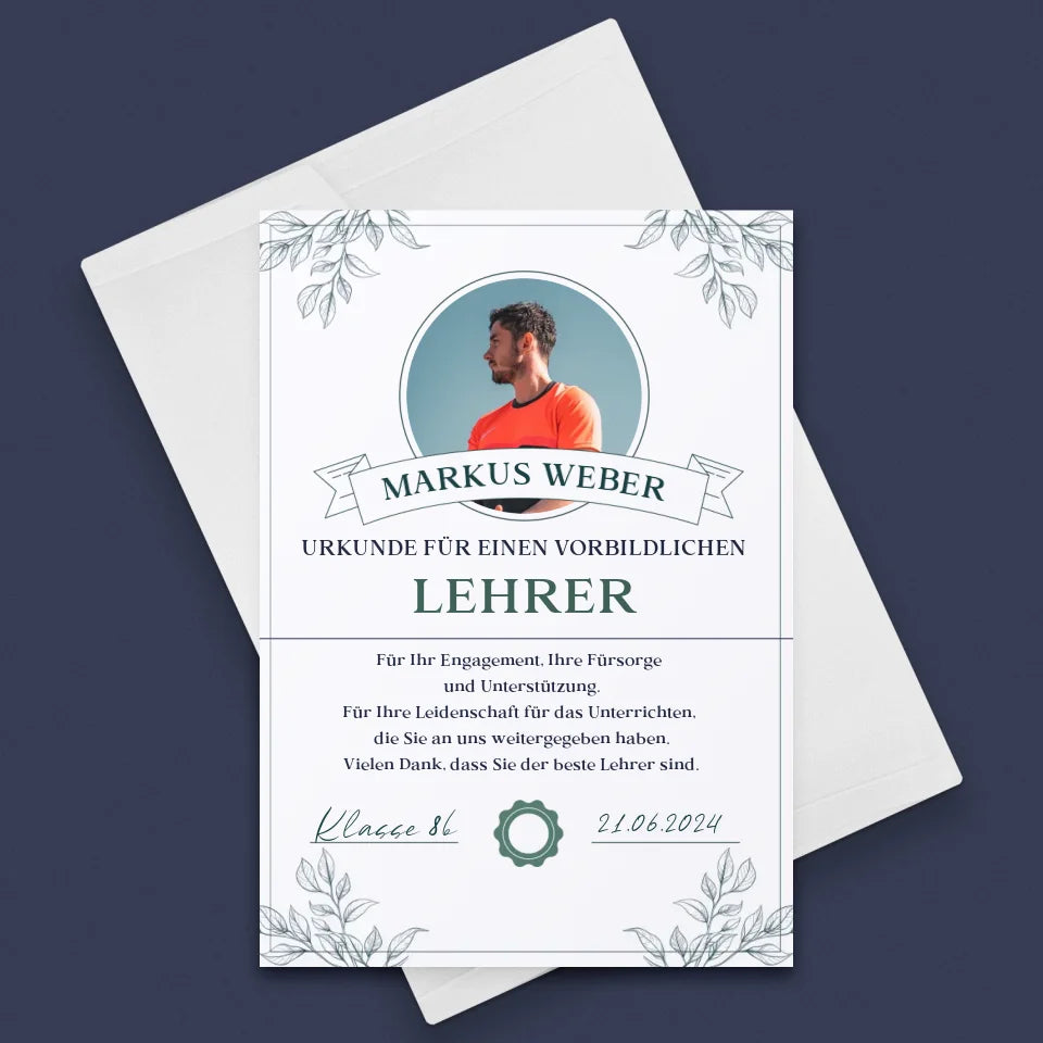 Foto Und Unterschrift: Urkunde Vorbildlicher Lehrer - Glückwunschkarte