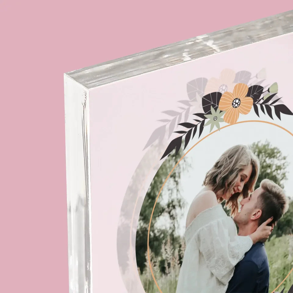 Druck auf einem 2 cm dicken, klaren Acrylblock (Plexiglas), individuell personalisiert.