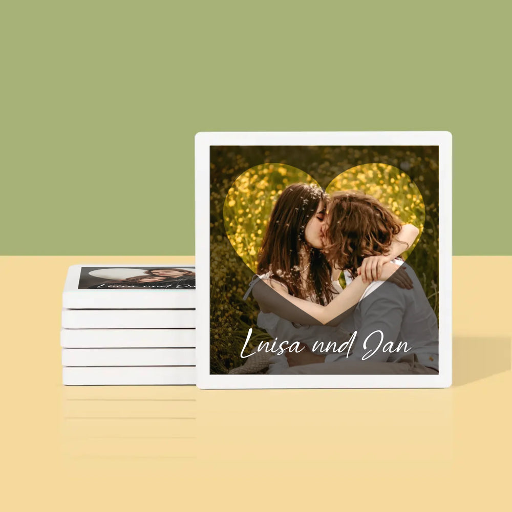 Foto Und Unterschrift: Verliebte Herz - Tassenuntersetzer