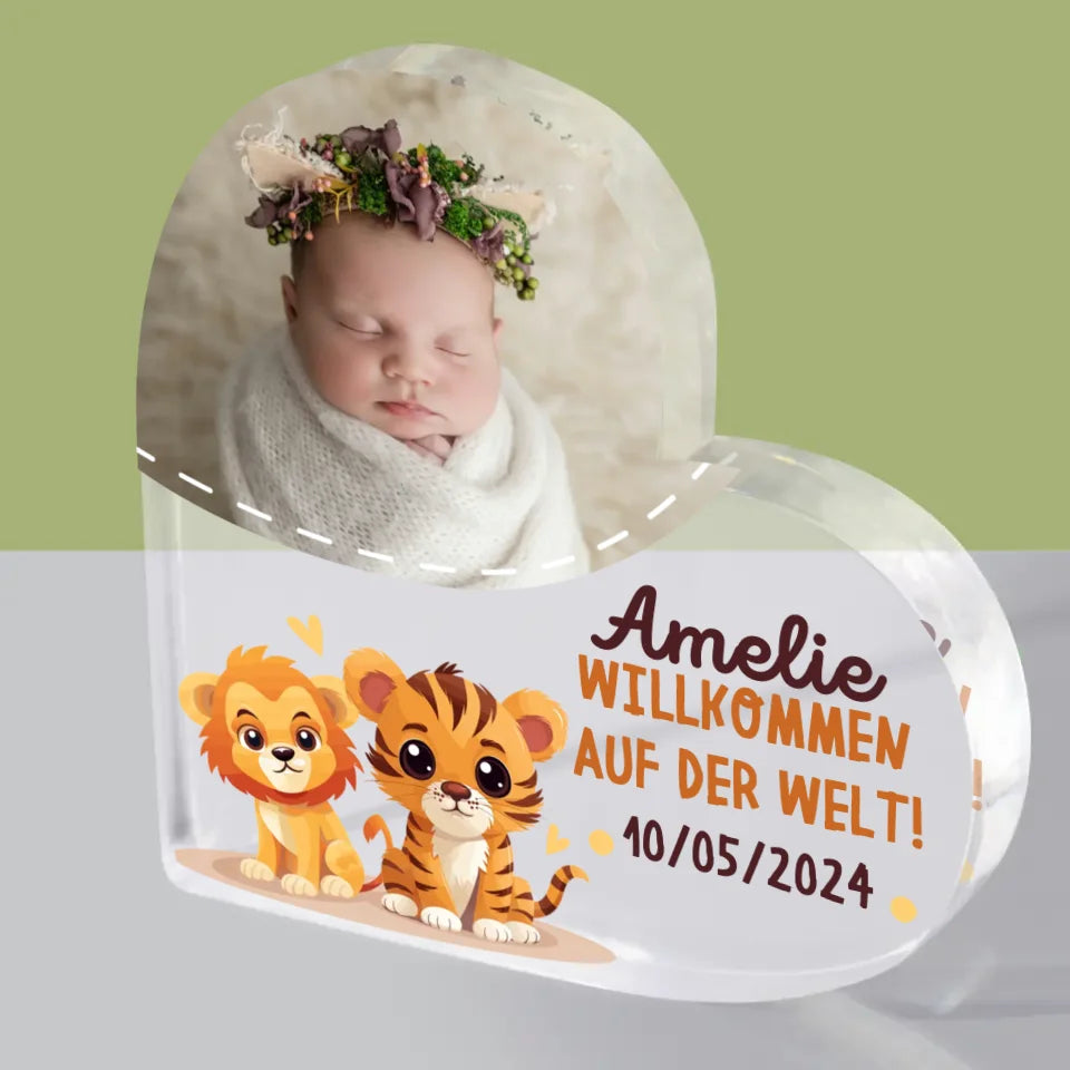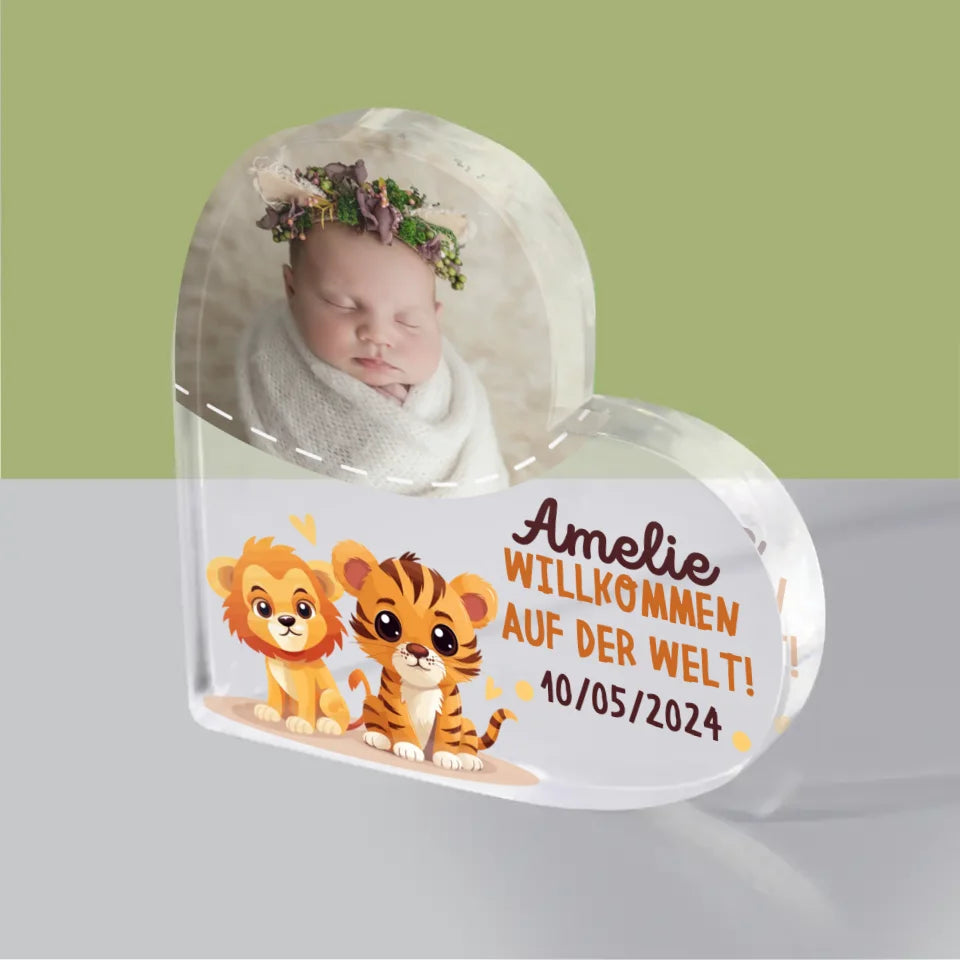 Foto Und Unterschrift: Willkommen Auf Der Welt - Acrylblock Herz