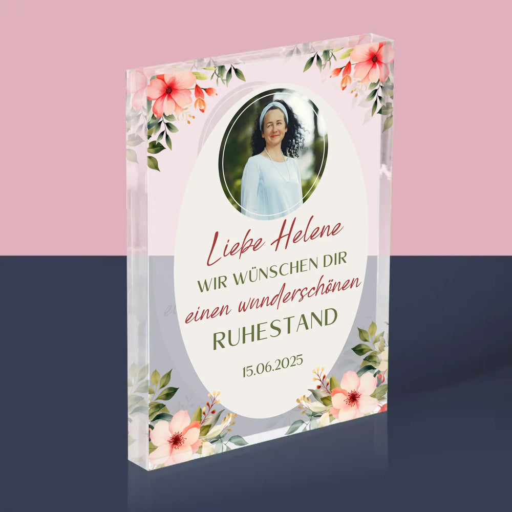 Foto Und Unterschrift: Wunderschönen Ruhestand - Acrylblock - Vertikal