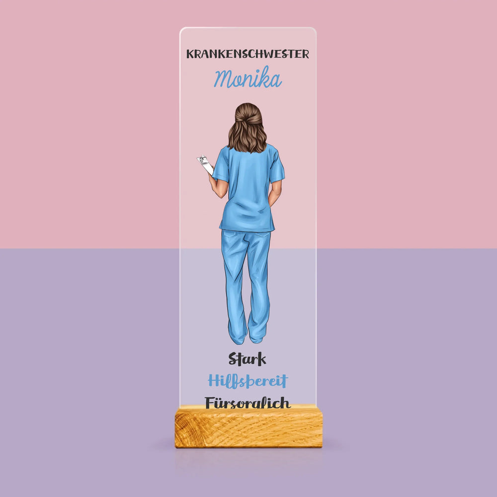 Dank des eleganten Holzständers kann der Druck überall platziert werden und ist stabil.