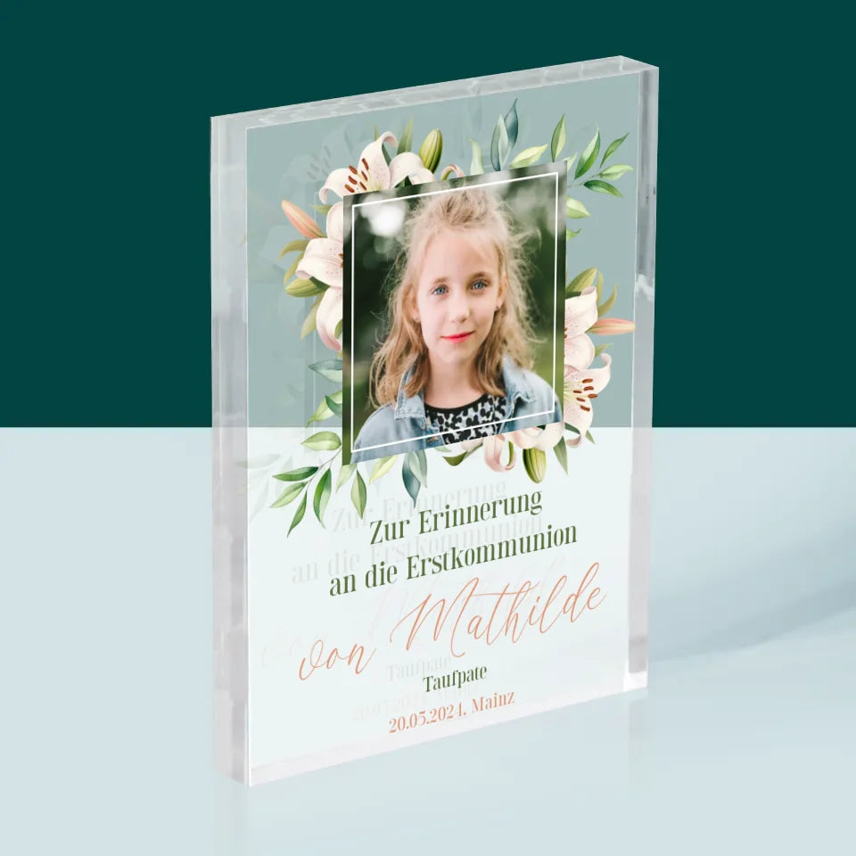 Foto Und Unterschrift: Zur Erinnerung An Die Erstkommunion - Acrylblock - Vertikal