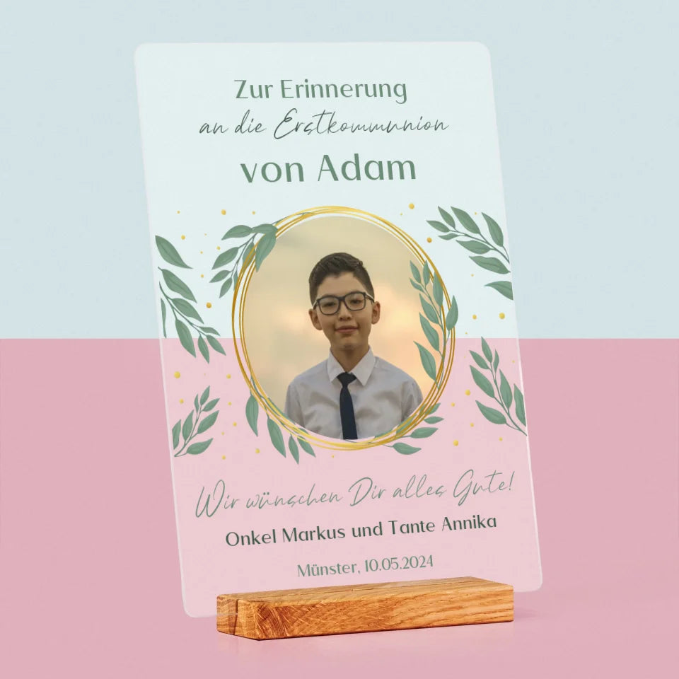 Foto Und Unterschrift: Zur Erstkommunion - Druck auf Acrylglas mit LED-Beleuchtung