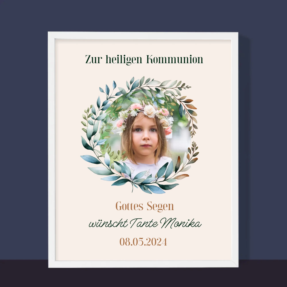 Foto Und Unterschrift: Zur Heiligen Kommunion - Druck mit Rahmen - Vertikal
