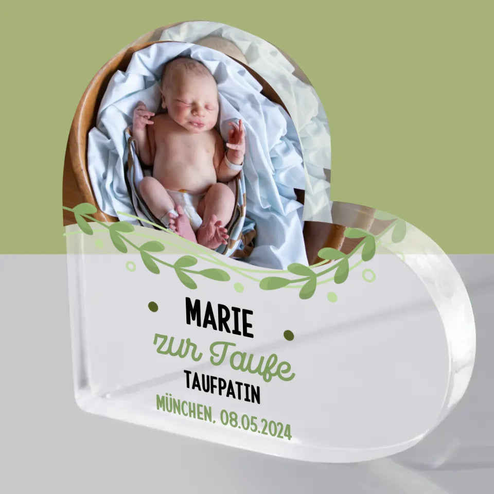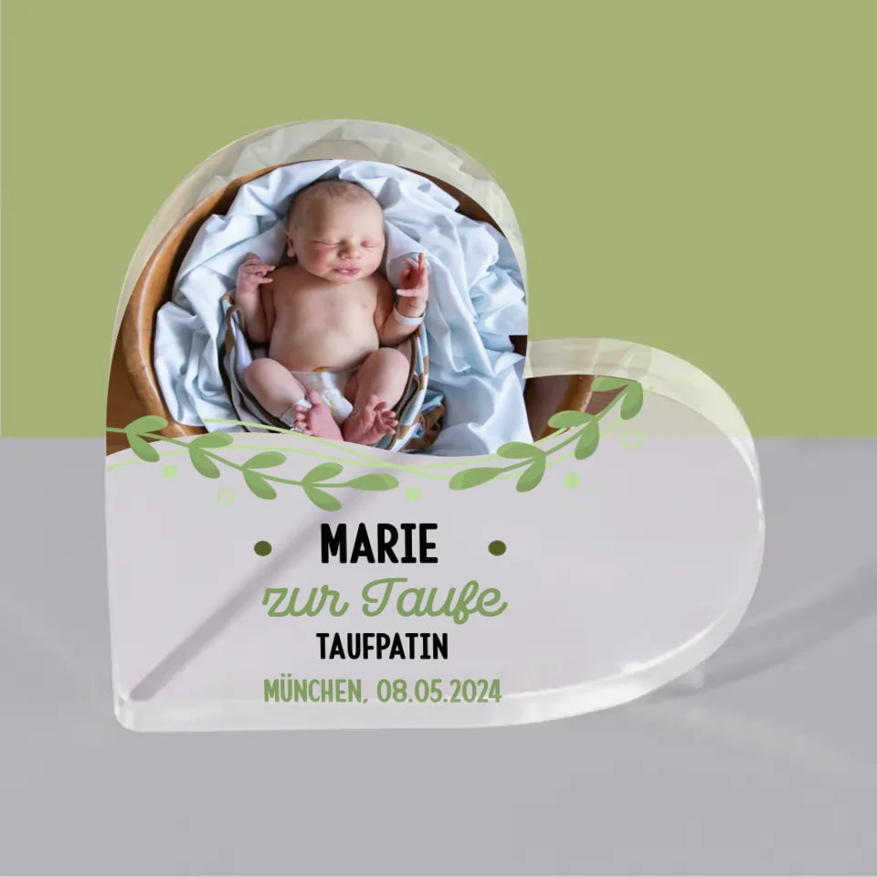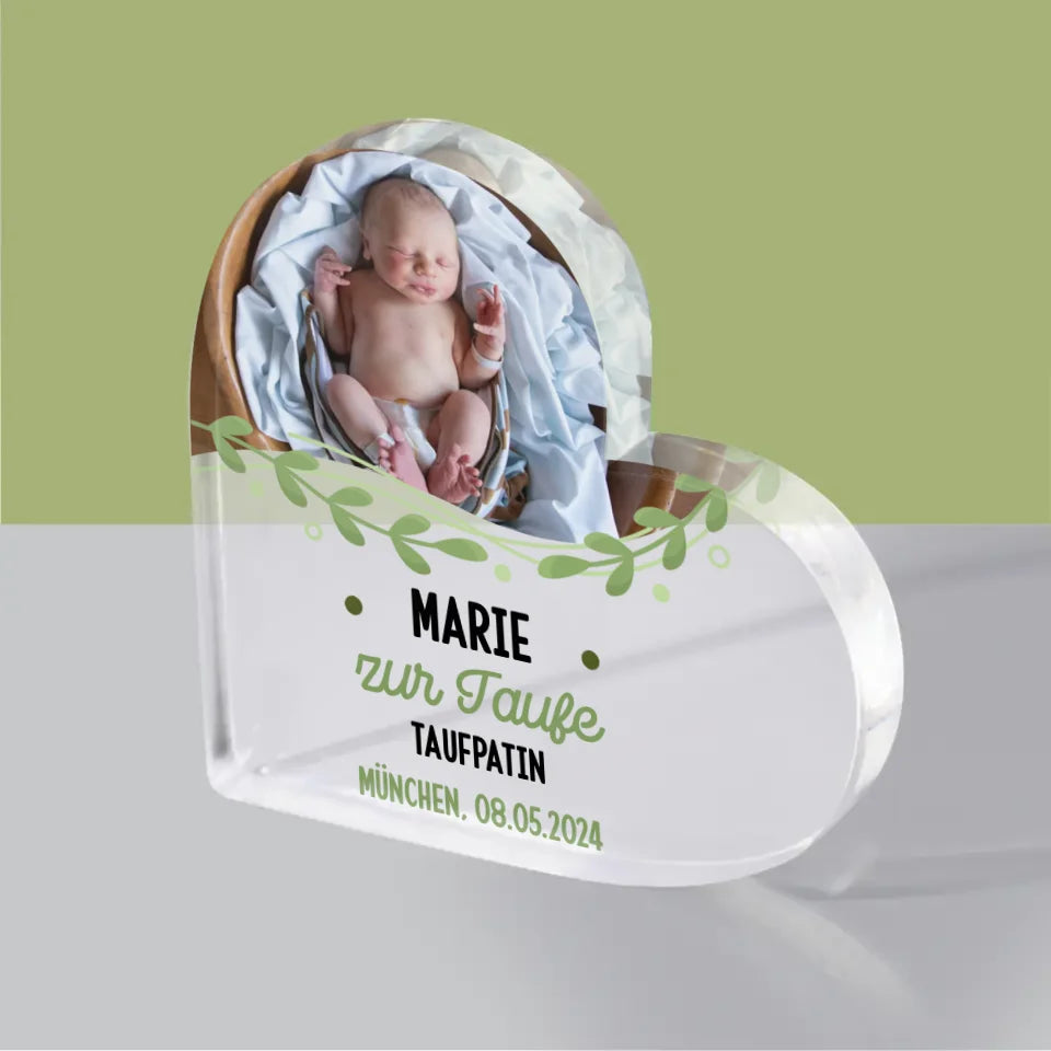 Foto Und Unterschrift: Zur Taufe - Acrylblock Herz