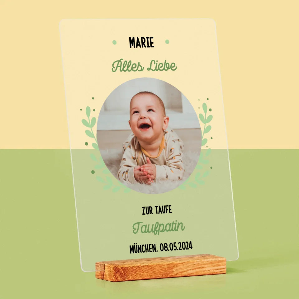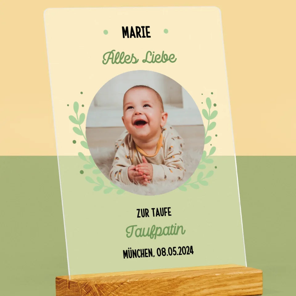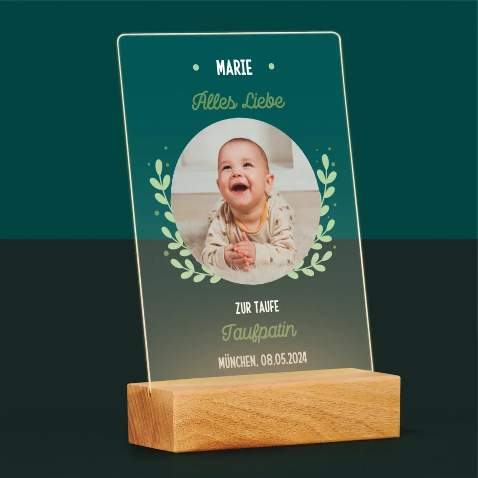 Foto Und Unterschrift: Zur Taufe - Druck auf Acrylglas mit LED-Beleuchtung