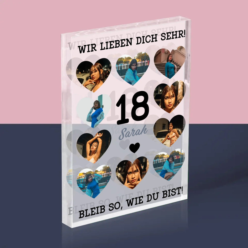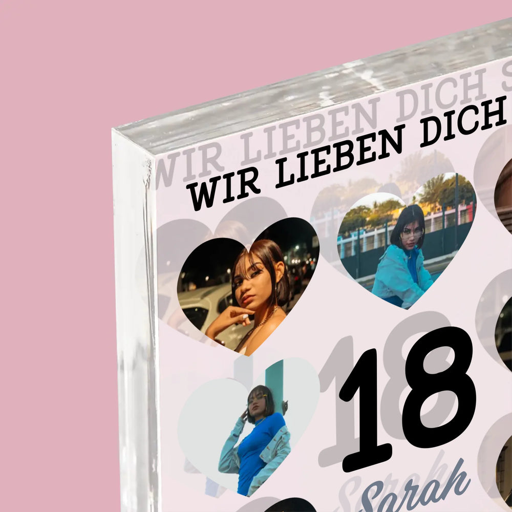 Fotocollage: 18 Herzen - Acrylblock - Vertikal