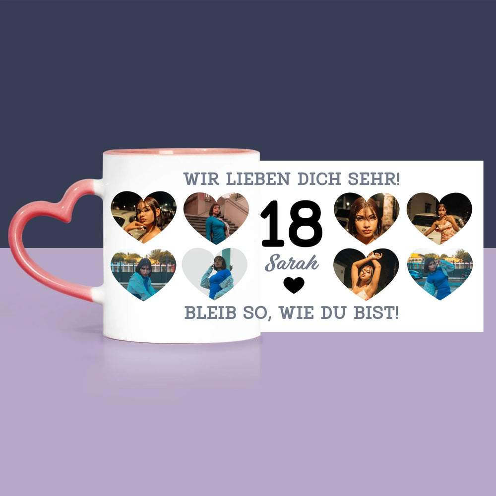 Fotocollage: 18 Herzen - Geschenkset mit Tasse, Teddybär und Süßigkeiten
