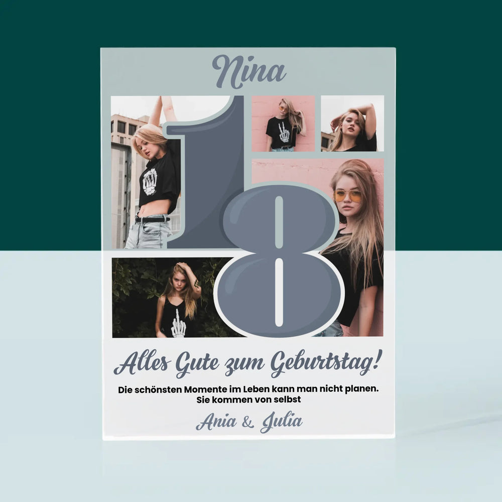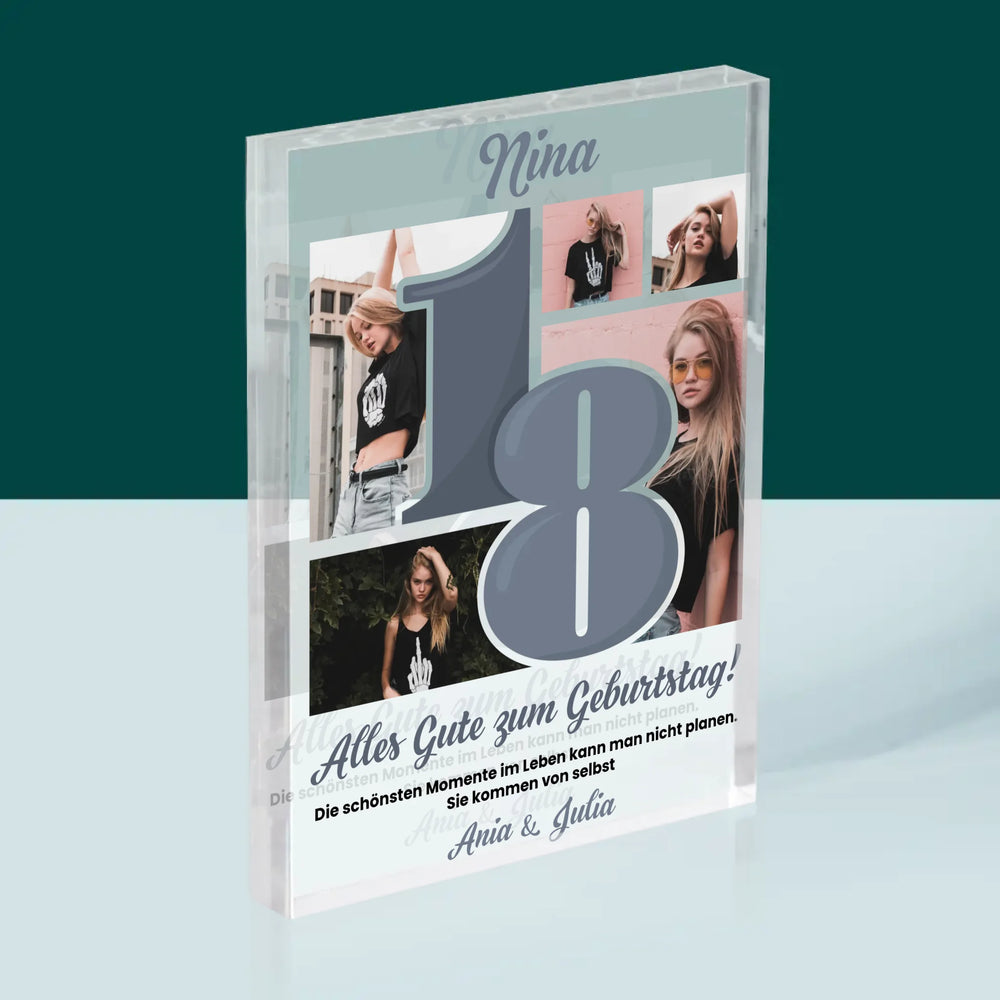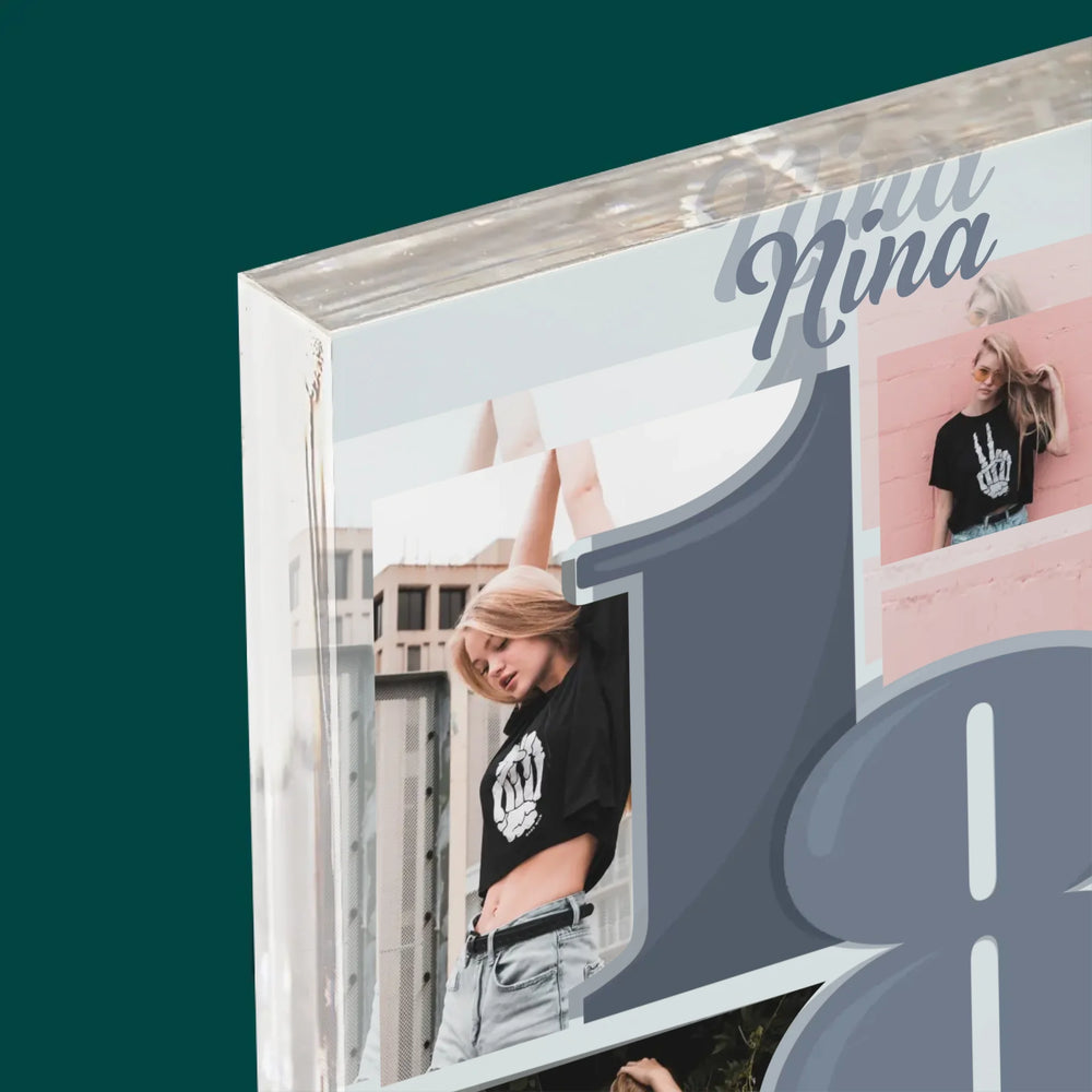 Druck auf einem 2 cm dicken, klaren Acrylblock (Plexiglas), individuell personalisiert.