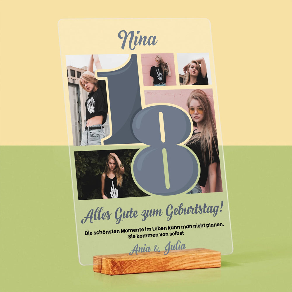Druck auf einem 2 cm dicken, klaren Acrylglas (Plexiglas), individuell personalisiert.