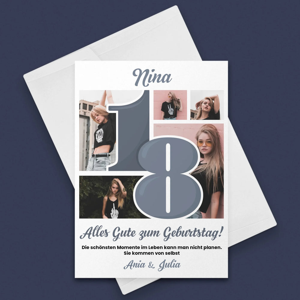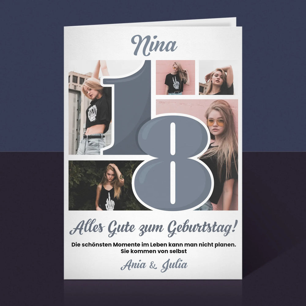 Personalisierte Glückwunschkarte für einen besonderen Anlass. Wählen Sie Ihre eigenen Fotos aus und erstellen Sie ein einzigartiges Geschenk!