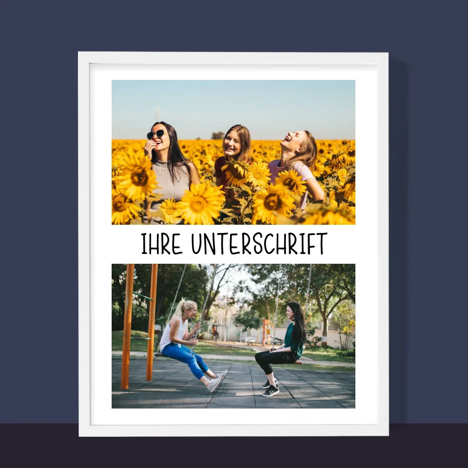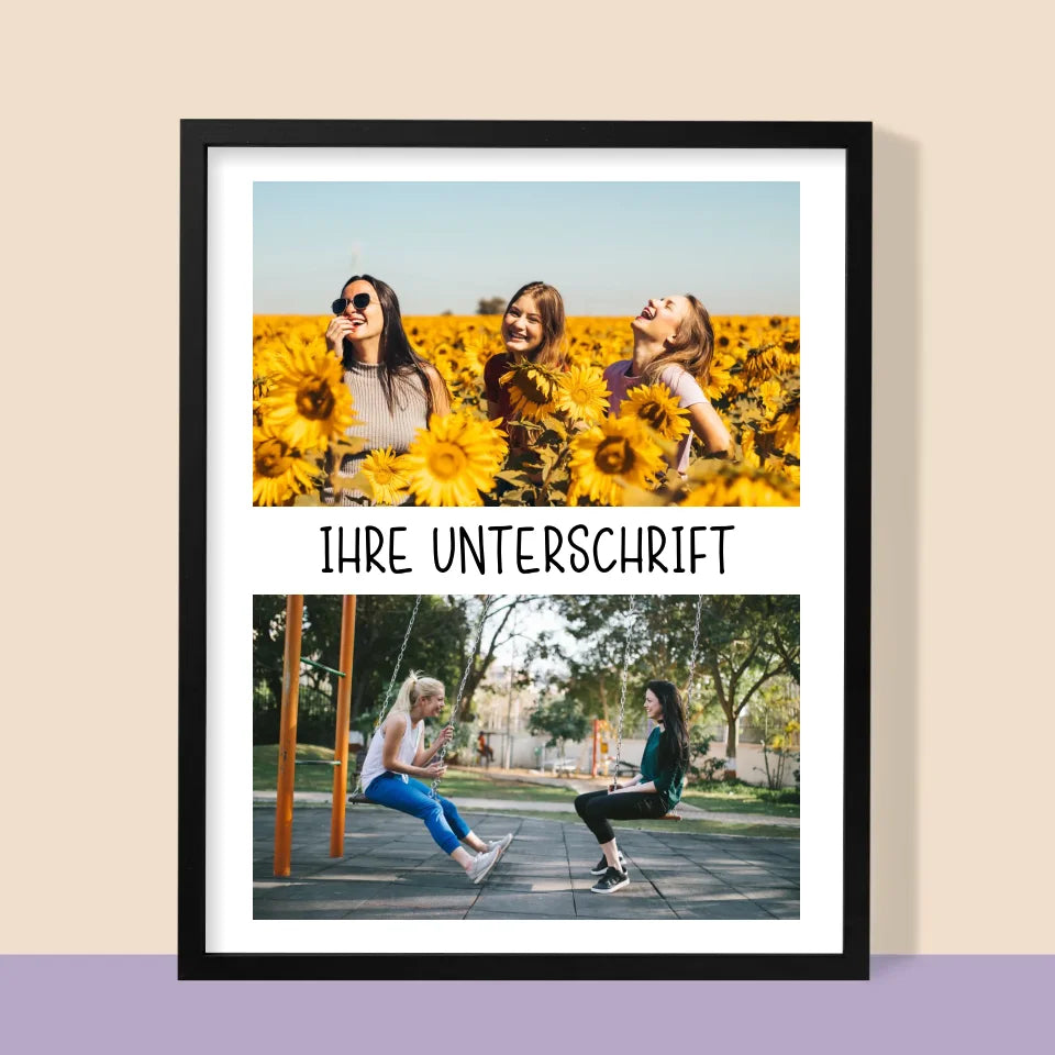 Fotocollage: 2 Fotos Und Unterschrift - Druck mit Rahmen - Vertikal