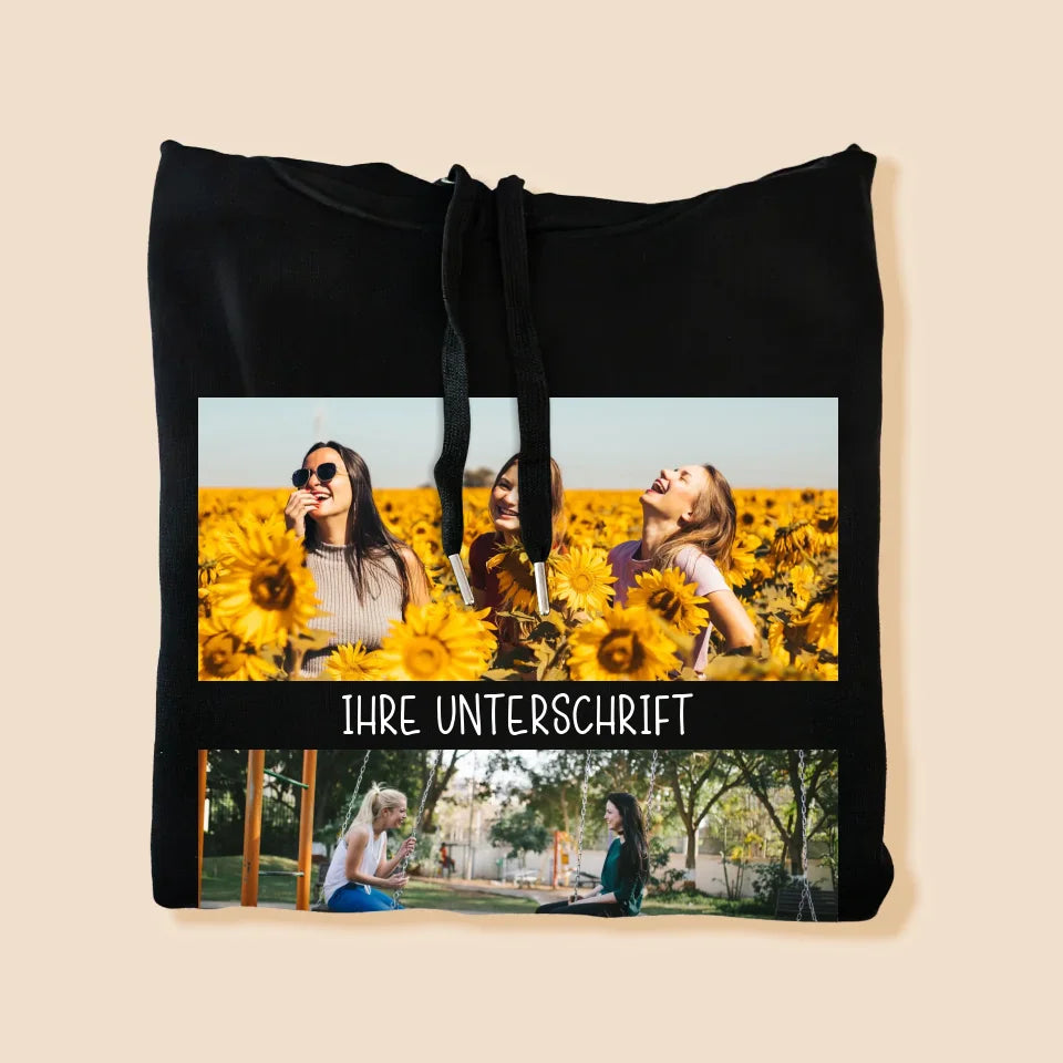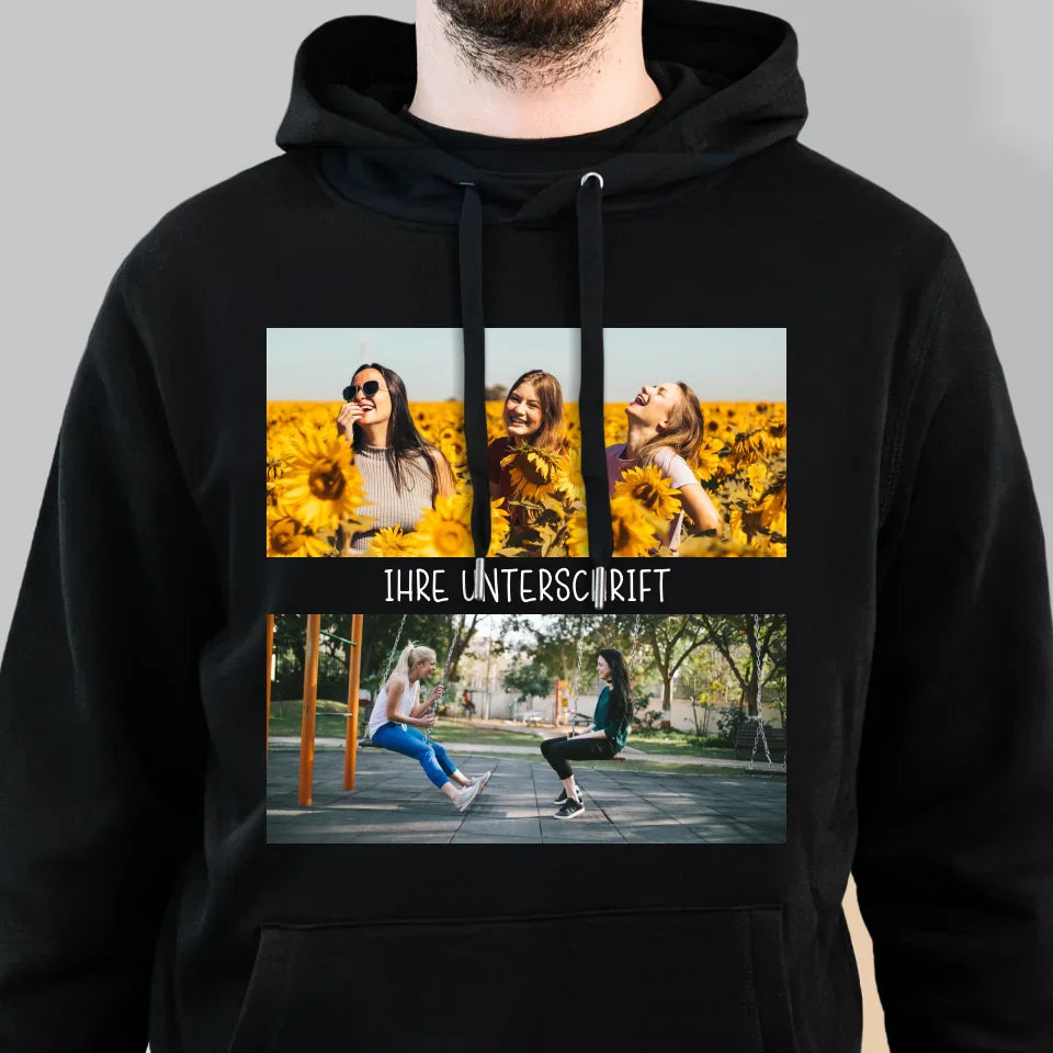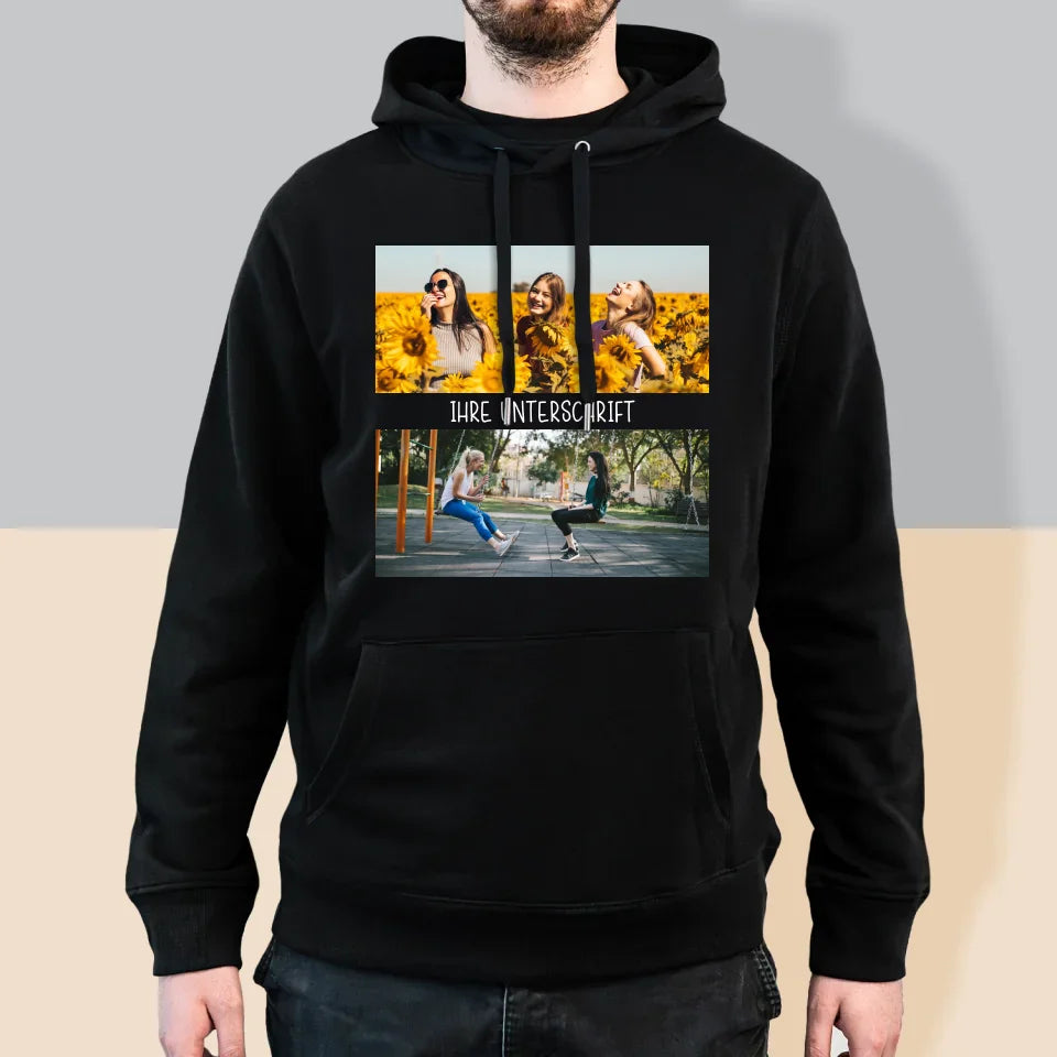 Fotocollage: 2 Fotos Und Unterschrift - Kapuzenpullover Für Herren