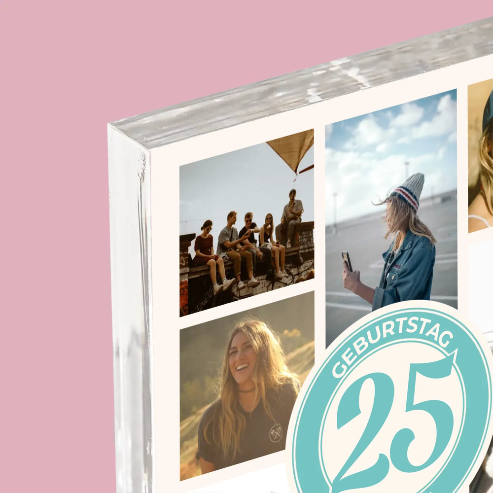 Fotocollage: 25 Geburtstag - Acrylblock - Vertikal