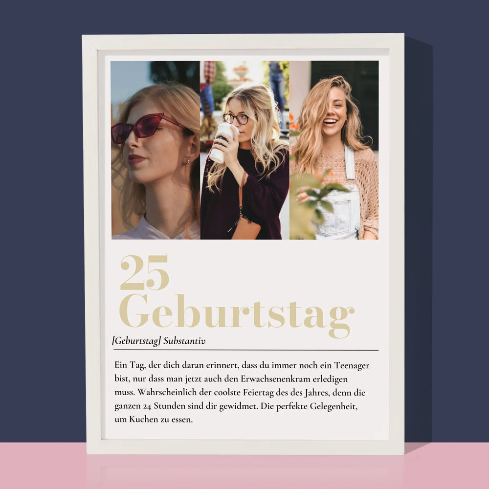 Fotocollage: 25. Geburtstag Definition - Druck mit Rahmen - Vertikal