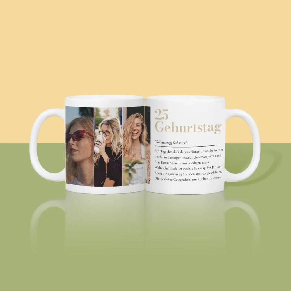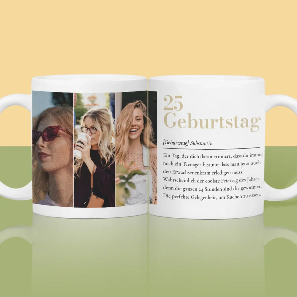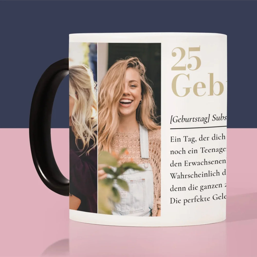 Fotocollage: 25. Geburtstag Definition - Zaubertasse