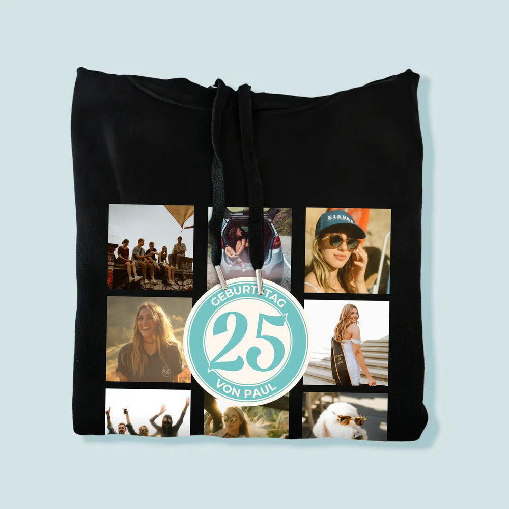 Fotocollage: 25 Geburtstag - Kapuzenpullover für Herren