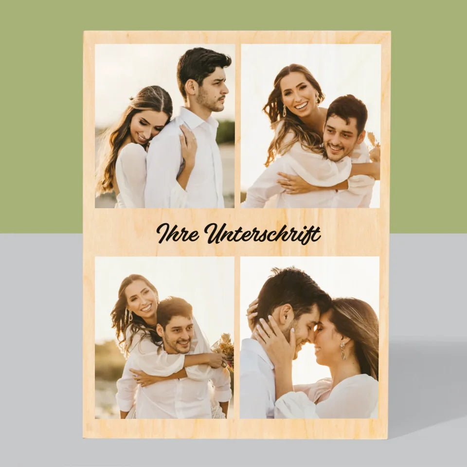 Fotocollage: 4 Fotos Und Unterschrift - Druck auf Holz - Vertikal