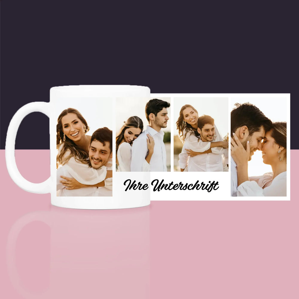 Fotocollage: 4 Fotos Und Unterschrift - Geschenkset mit Tasse, Tee und Süßigkeiten